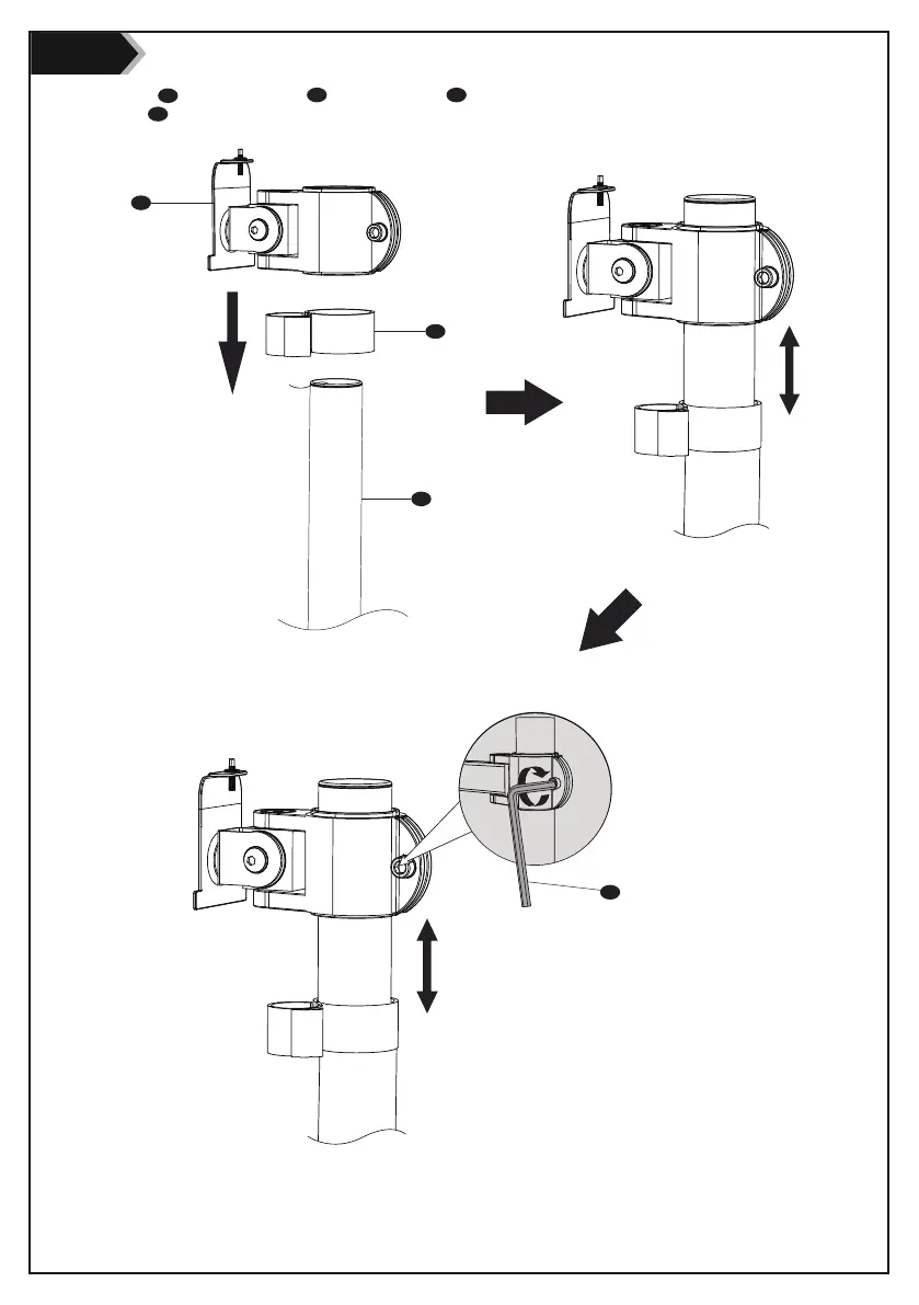 Put the Wire Clip J and Monitor Arm B through the Pole D , adjust the preferred height and tighten using