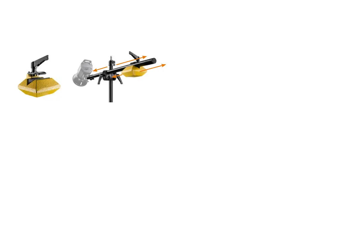 das Gegengewicht am Ausleger und / oder den Ausleger in der Halterung