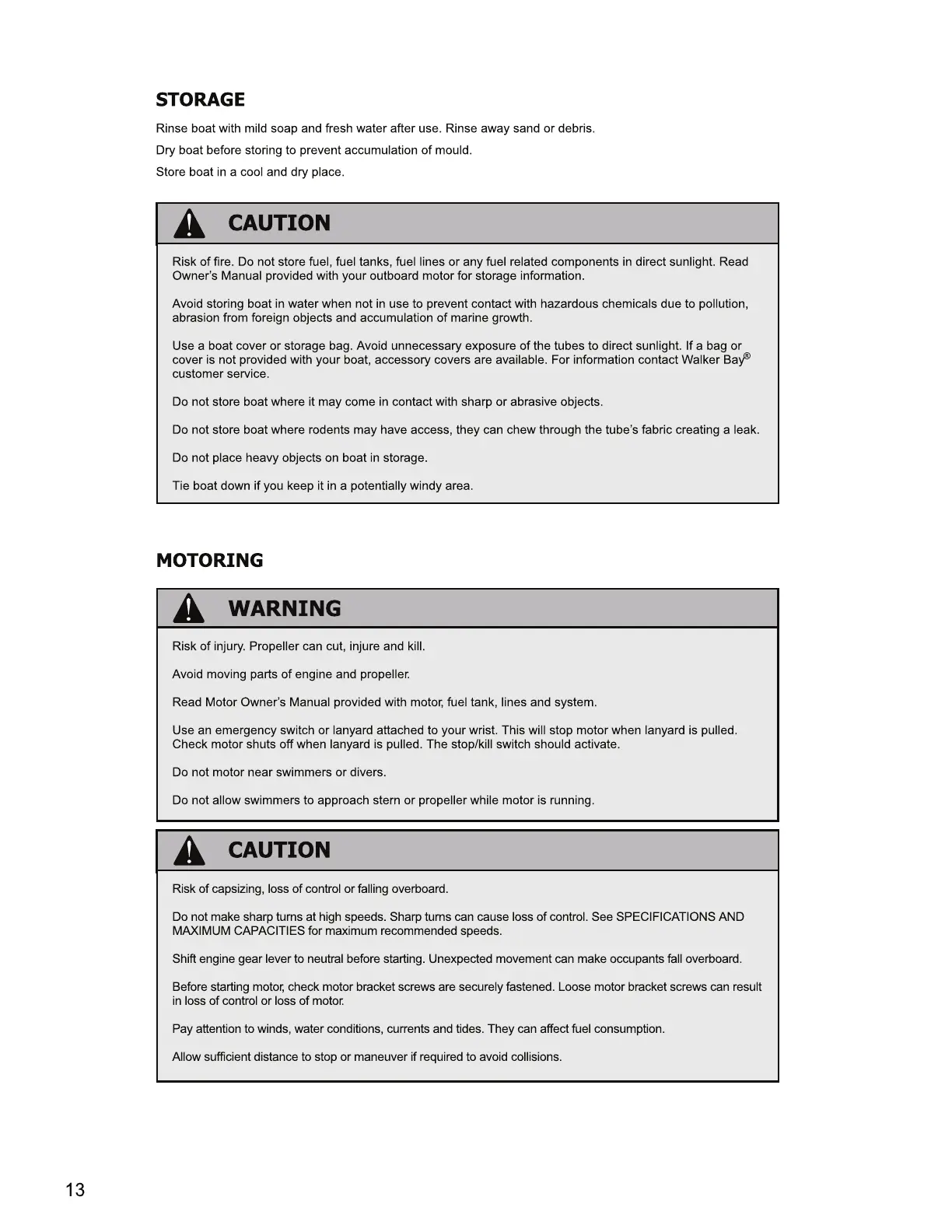 Walker Bay Generation 450 - Motoring Operations; Motor Operation Safety Warnings; Motor Control and Speed Advice