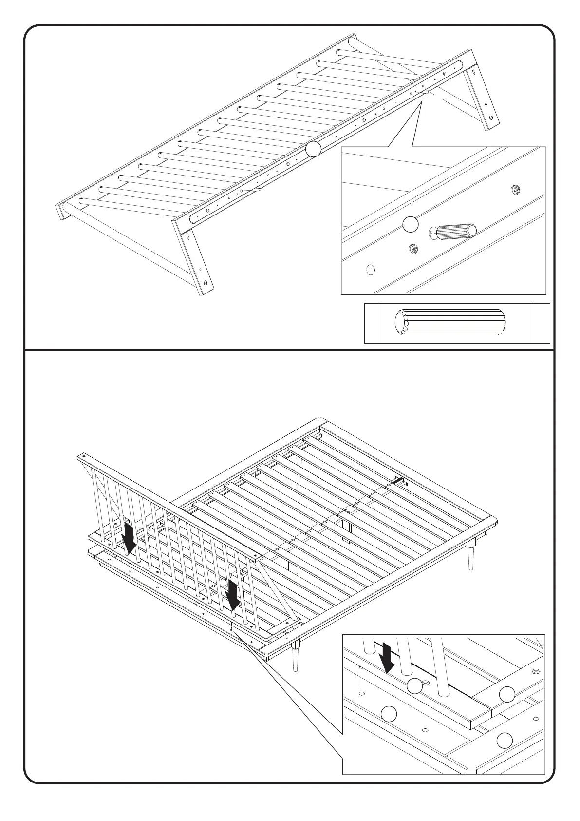 Walker Edison BQSPIN - Step 18: Insert Wood Dowels in Slat; Step 19: Align and Attach Headboard