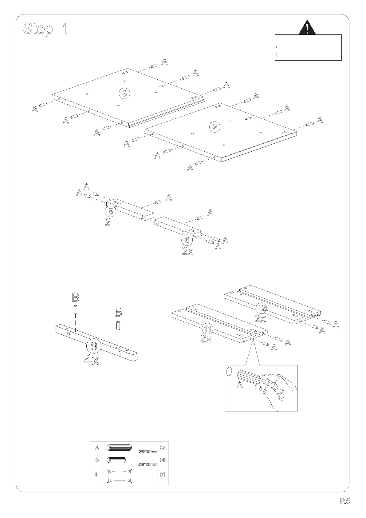 Walker Edison BR2DSLNS - Assembly Steps; Step 1: Dowel Insertion