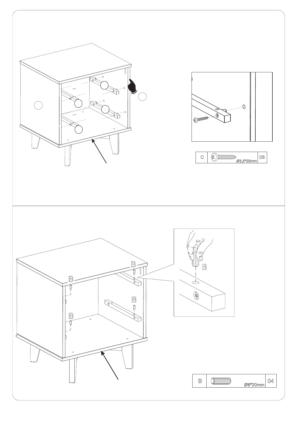 Walker Edison BR2DSLNS - Step 7: Install Drawer Runners; Step 8: Insert Drawer Rail Dowels