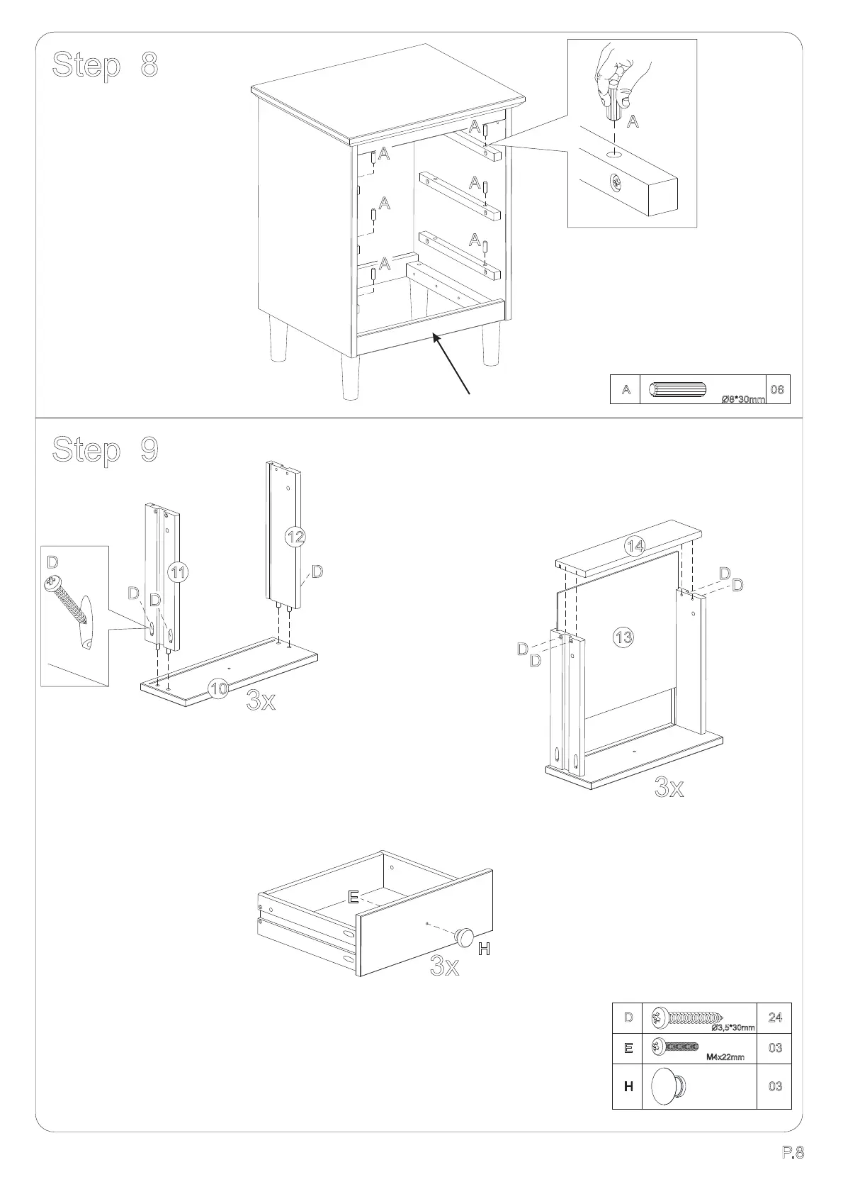 Walker Edison BR3DNS - Step 8: Insert Drawer Runners; Step 9: Assemble Drawers