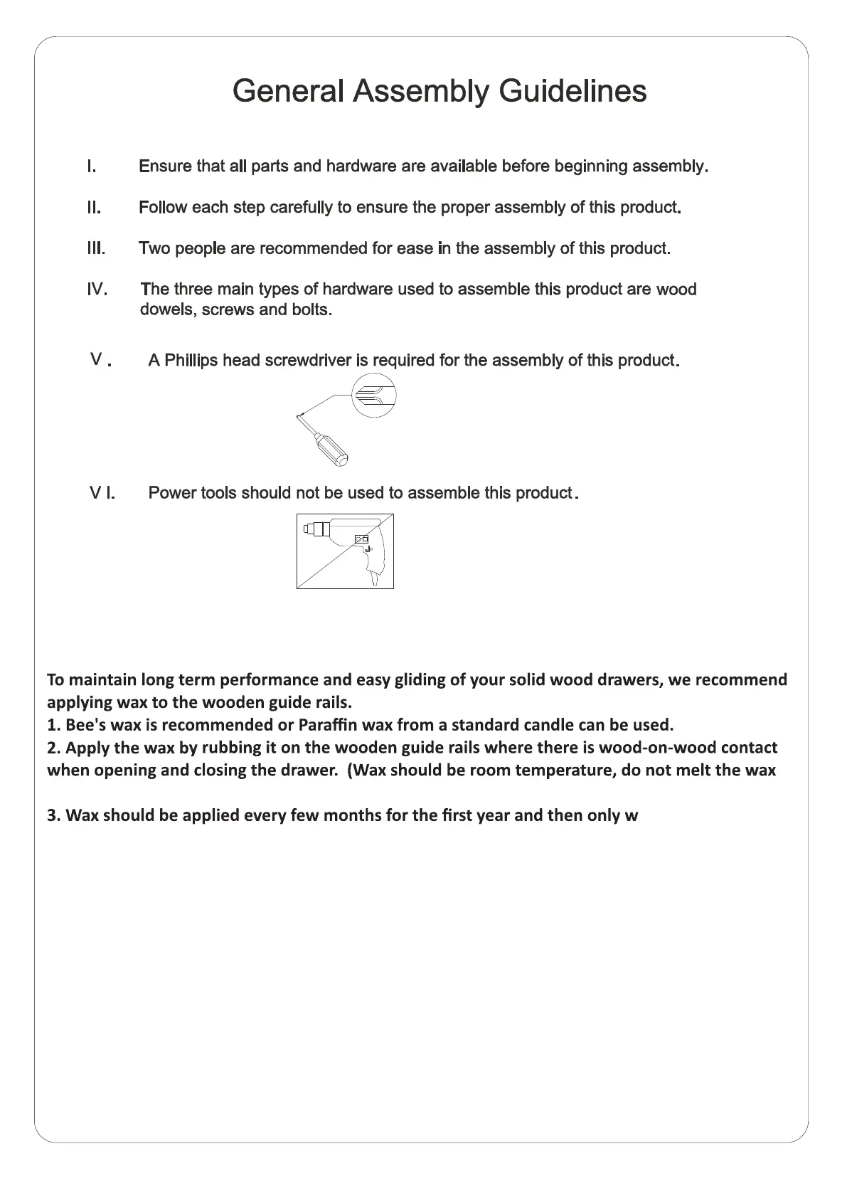 Walker Edison BR4DLYDDR - General Assembly Guidelines; Maintenance Guide