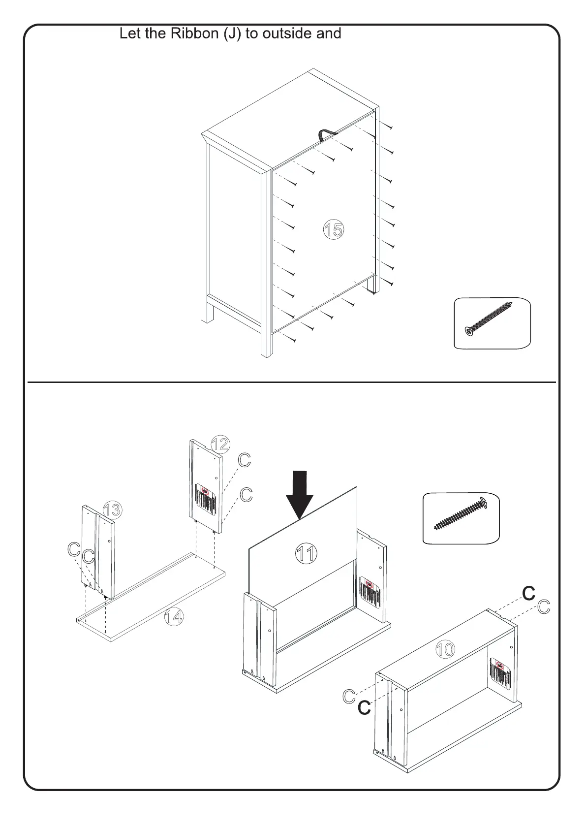 Insert screw C (x8) into parts (10),(12),(13),(14).