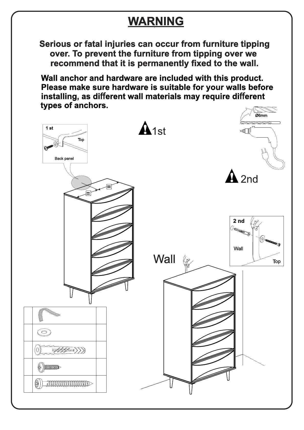 Name and address information for the manufacturer responsible for the anti-tip hardware and date