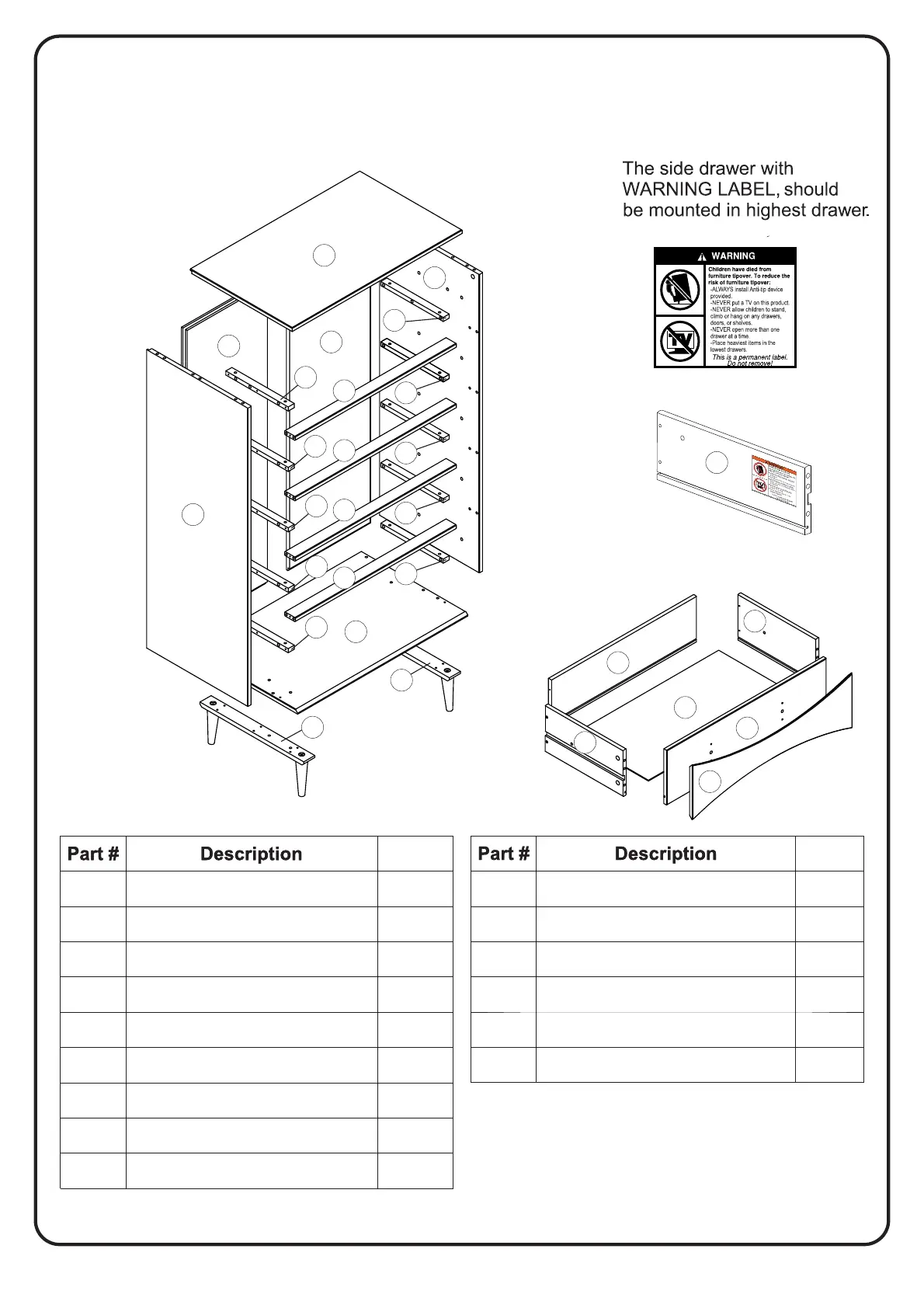 Right Drawer side with Warning