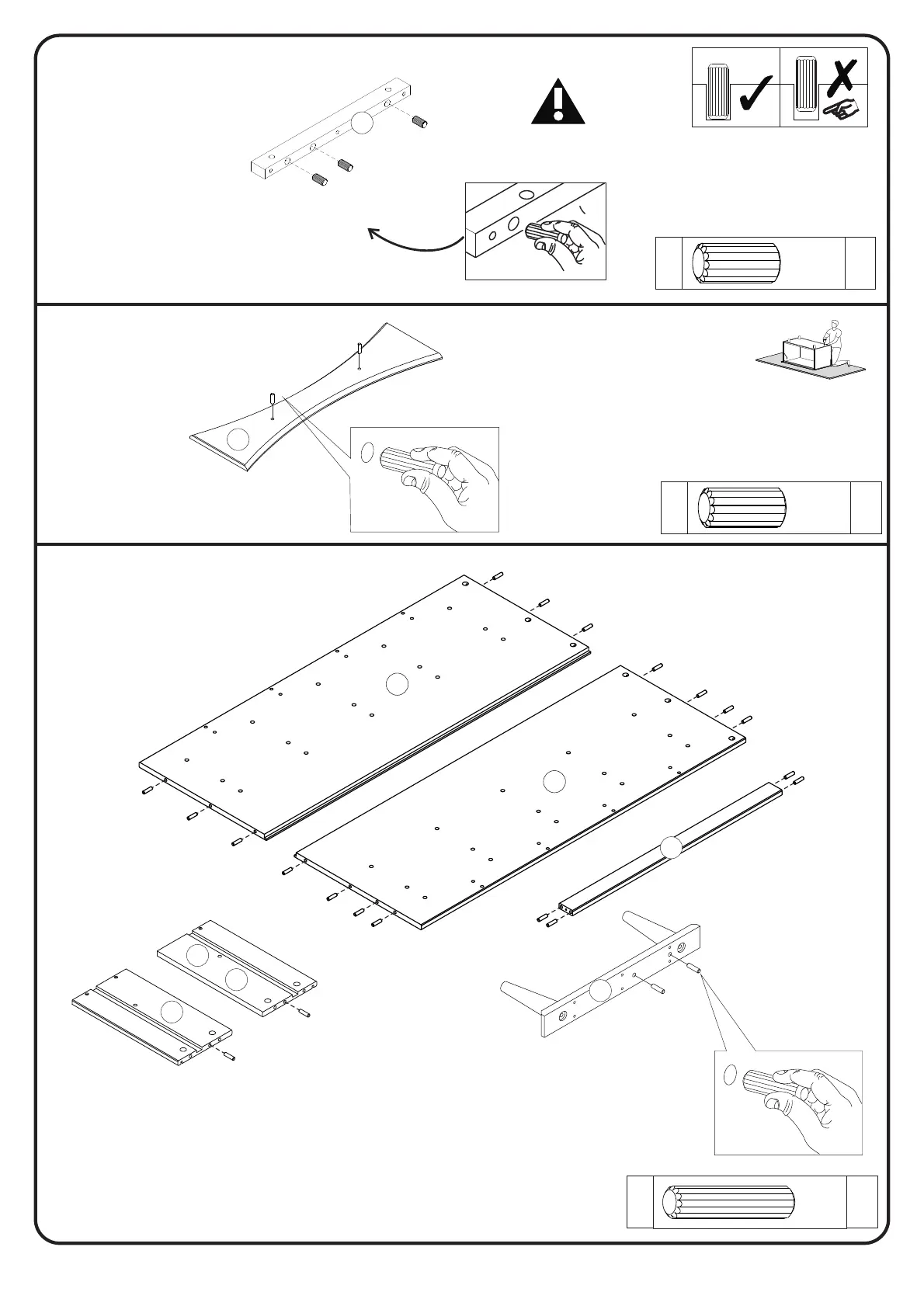 Insert wood dowel (A) into parts 2, 3, 5, 7, 11, 12 and 15.