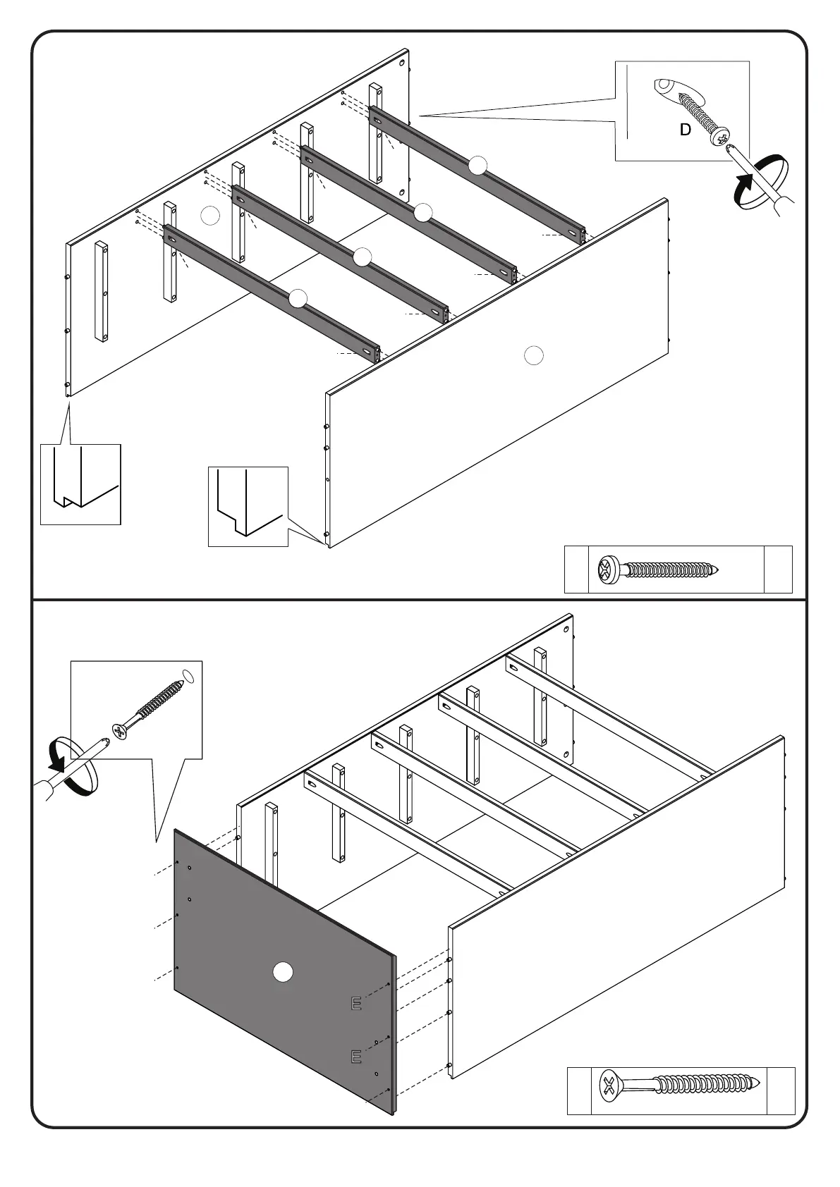 Attach parts 5 to parts 2 and 3, using screws (D)