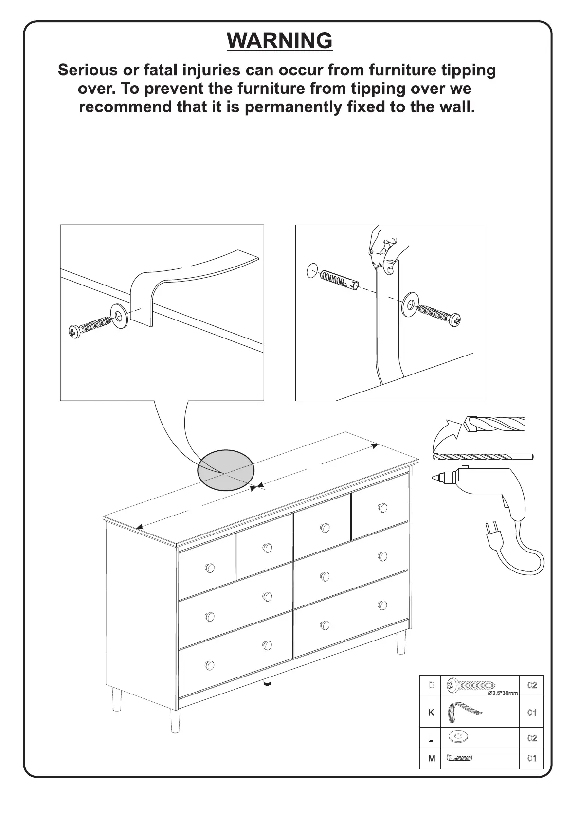 Walker Edison BR6DDDR - WARNING: Furniture Tipping Hazard; Risk of Furniture Tipping; Included Wall Anchoring Hardware; Wall Anchor Compatibility Check