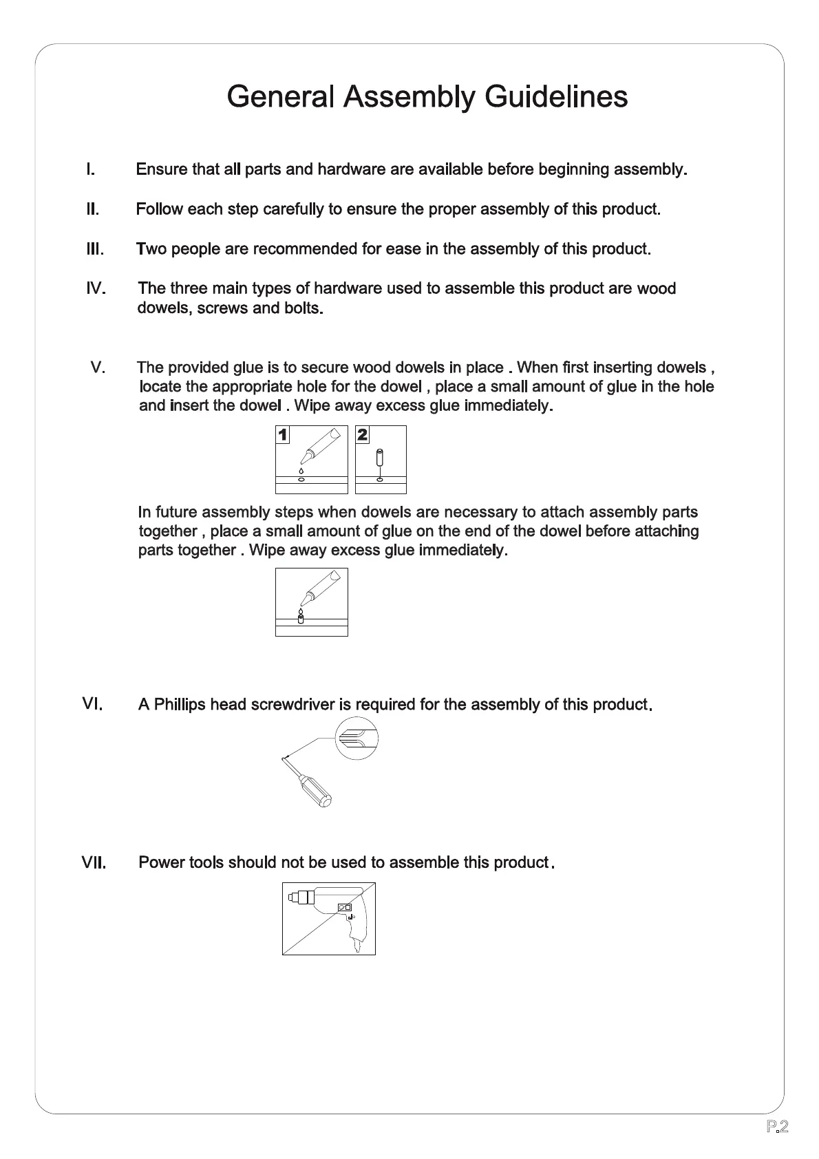 Walker Edison BR6DDDR - General Assembly Guidelines; Ensure Parts and Hardware Availability; Follow Assembly Steps Carefully; Two-Person Assembly Recommendation
