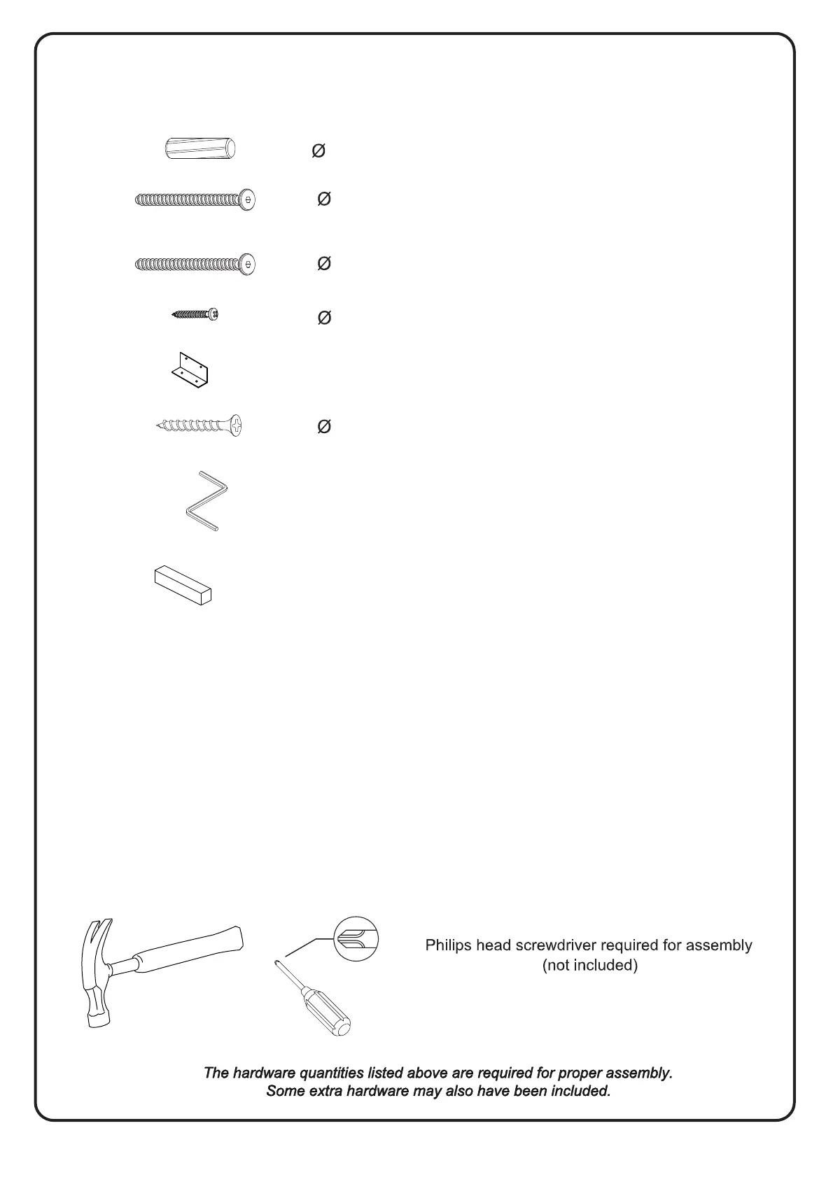 Mallet or hammer recommended for assembly