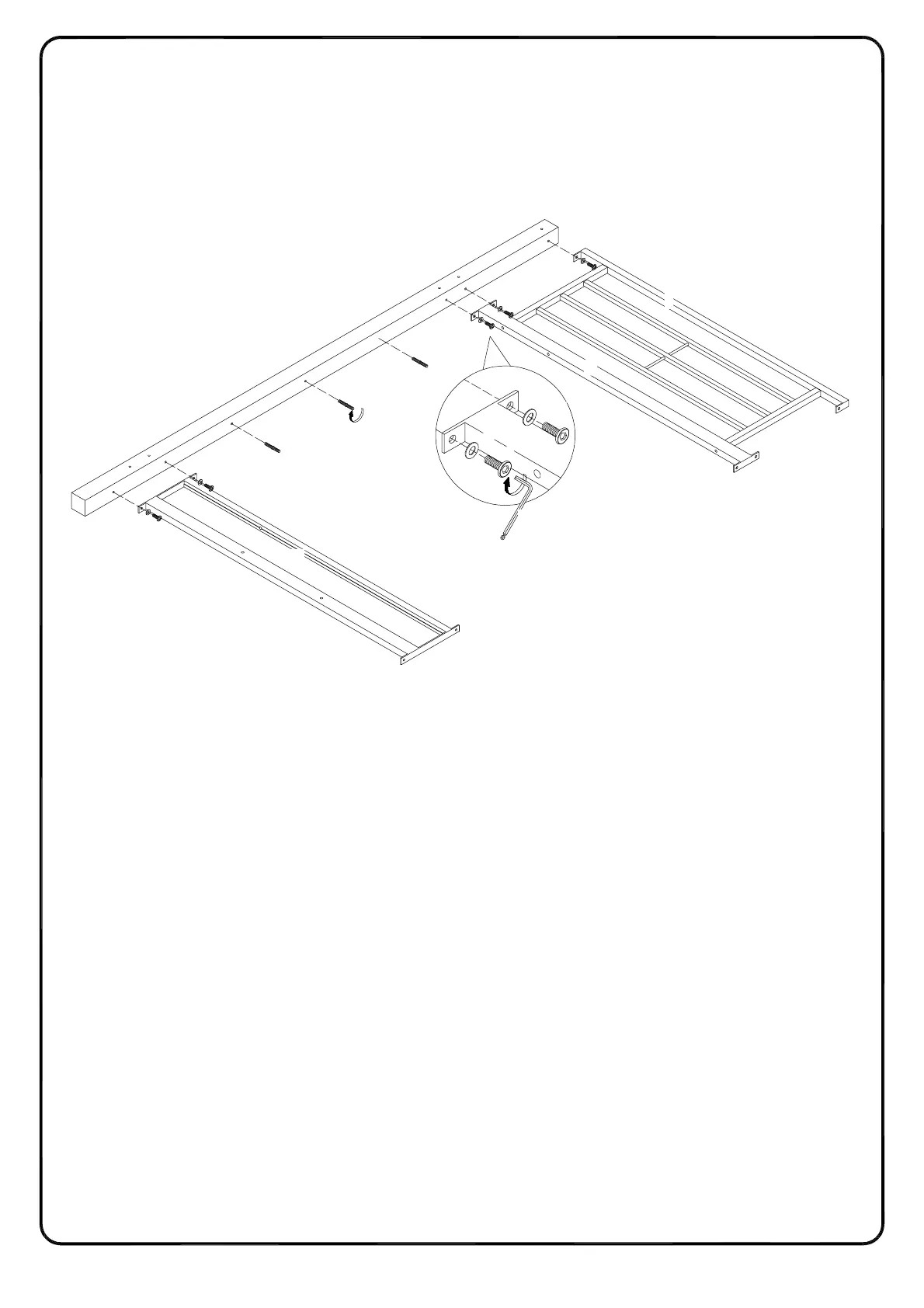 Fije el doble travesaño (G) y el travesaño (H) con barandilla (I) al poste (B) usando los pernos