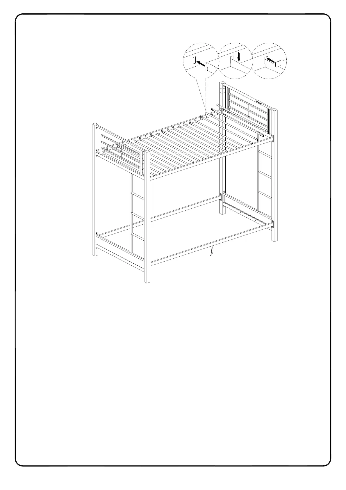 Insert mattress support bars (O) into the provided slots of crossbars (J). Secure mattress support