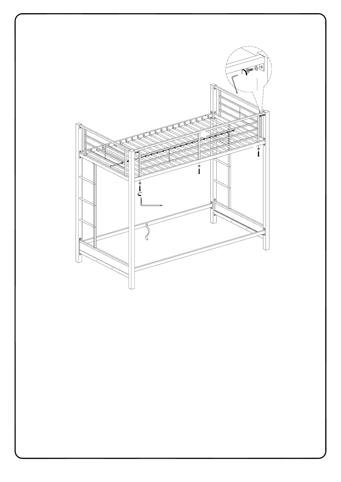 rondelles (7)avec la clé hexagonale (13). Fixez le garde-corps (E) à la traverse (J) en utilisant les