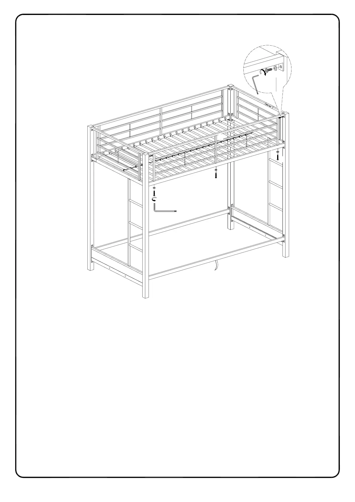 guardrail (E) to crossbar (J) using extra-large bolts (3) with large washers (2)with hex key (14).