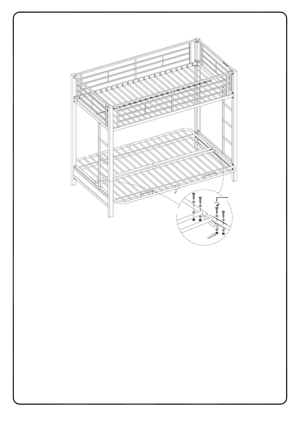 Fije los marcos del futón del paso anterior a los mecanismos de ajuste del futón utilizando pernos
