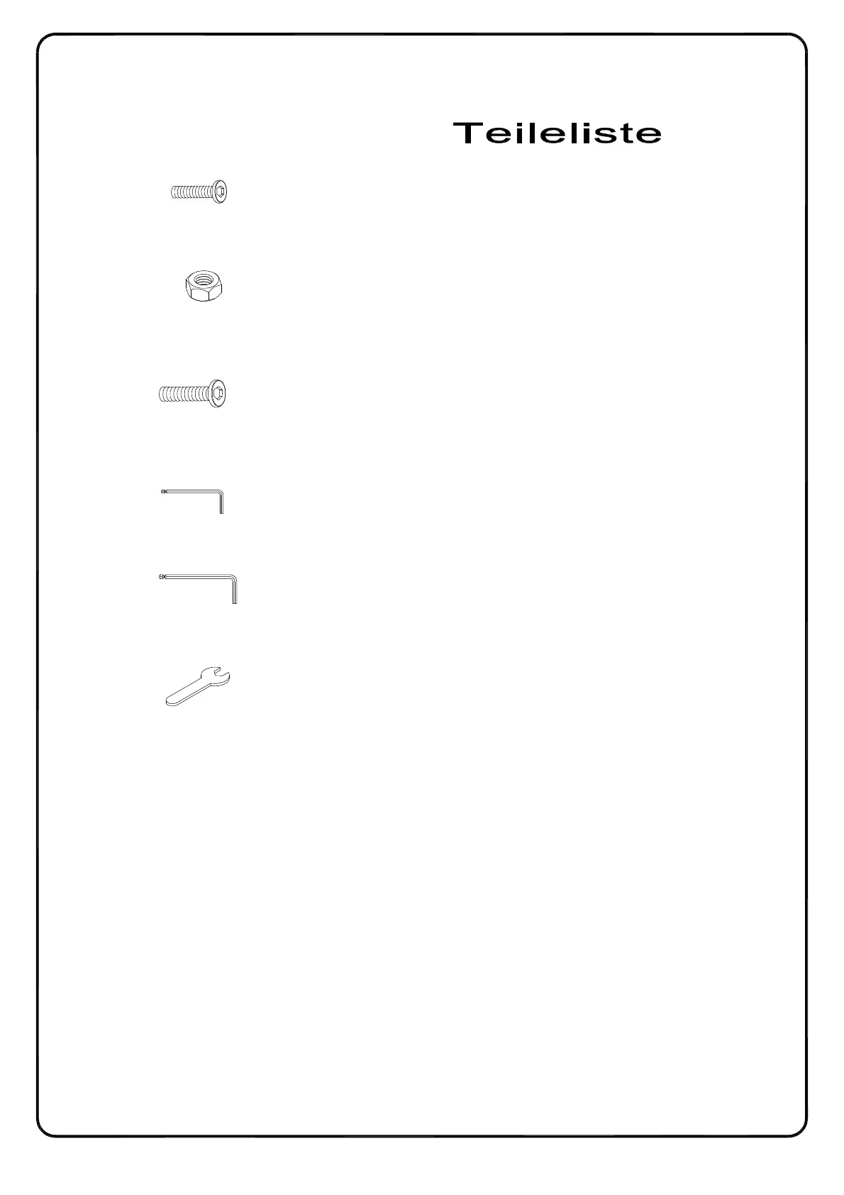 Für die ordnungsgemäße Montage sind die oben aufgeführten Mengen der jeweiligen Beschlägen