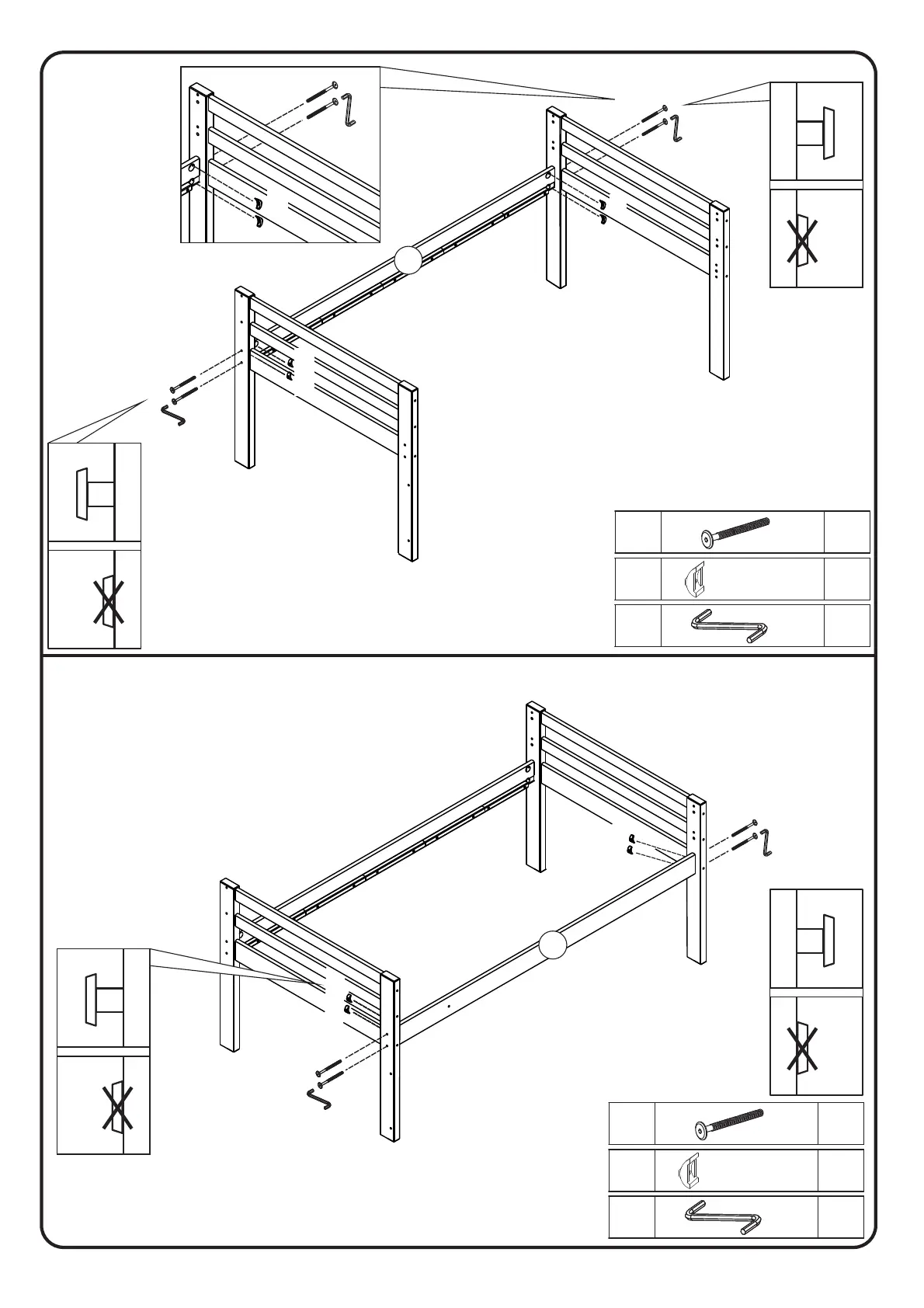 Insert barrel nuts (E) into bed rail (21) Attach bed rails