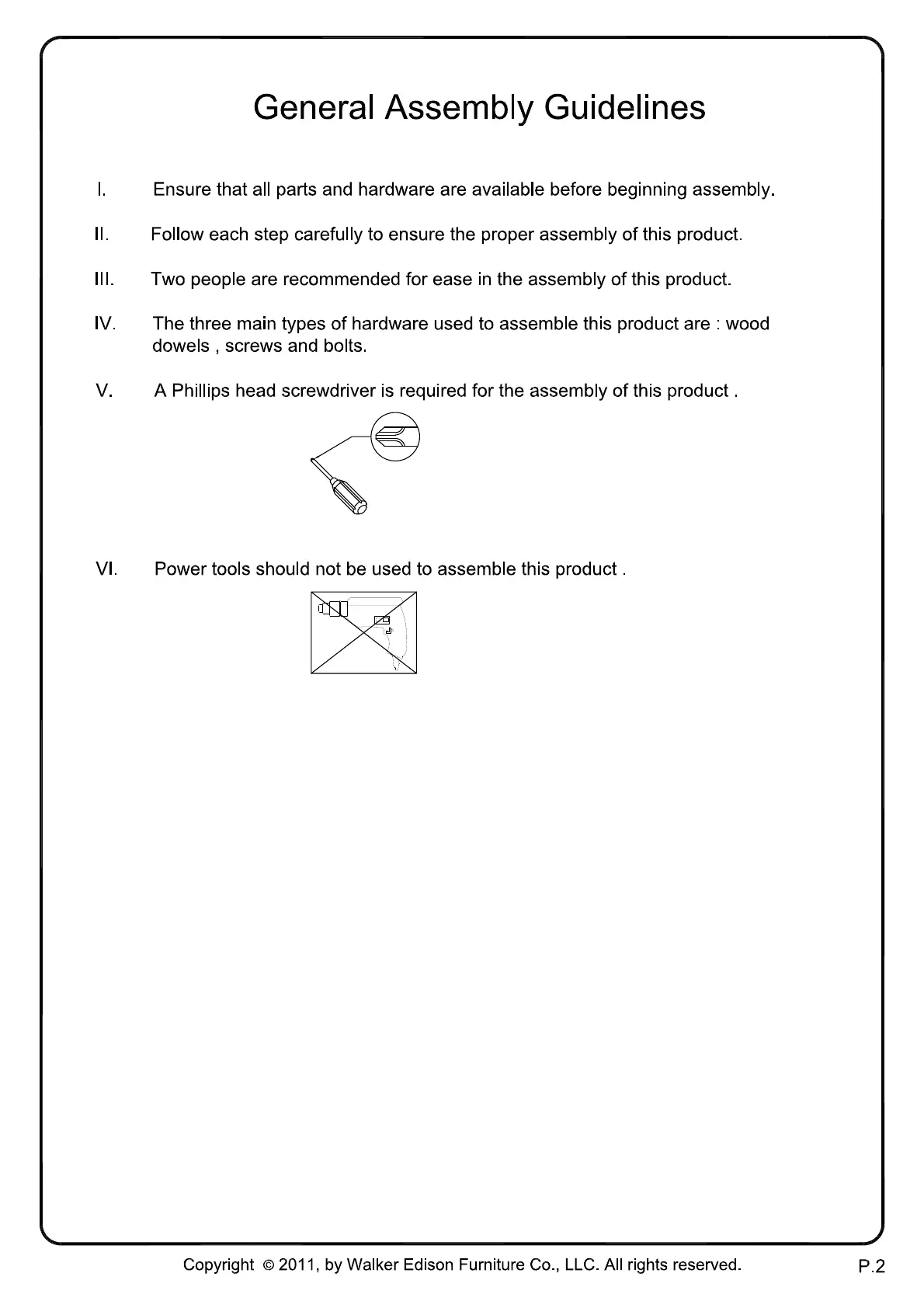 Walker Edison CHH - General Assembly Guidelines; Preparation and Availability; Step-by-Step Execution; Assistance Recommendation