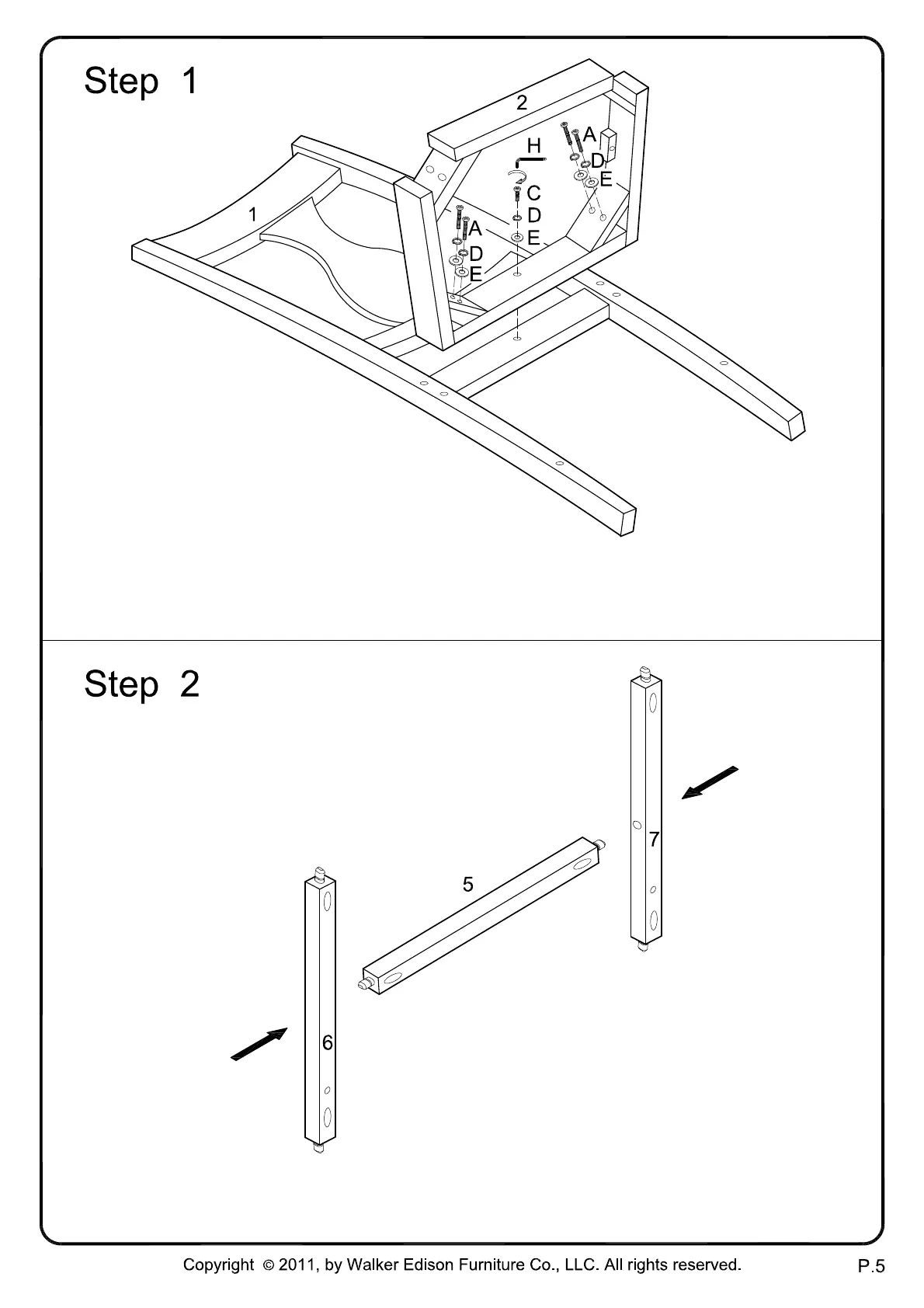 Walker Edison CHH - Step-by-Step Assembly; Step 1: Attach Seat Frame to Chair Back; Step 2: Attach Crossbars
