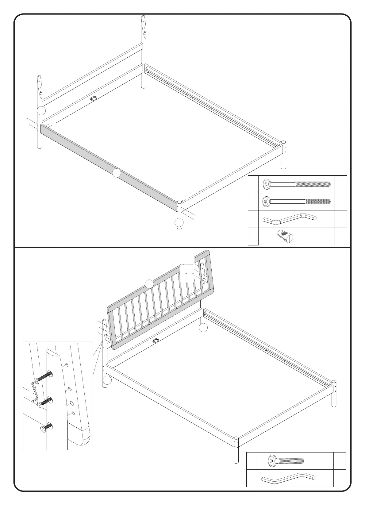 Attach parts 8 on feet 3 and 4 with screw A and hex key D