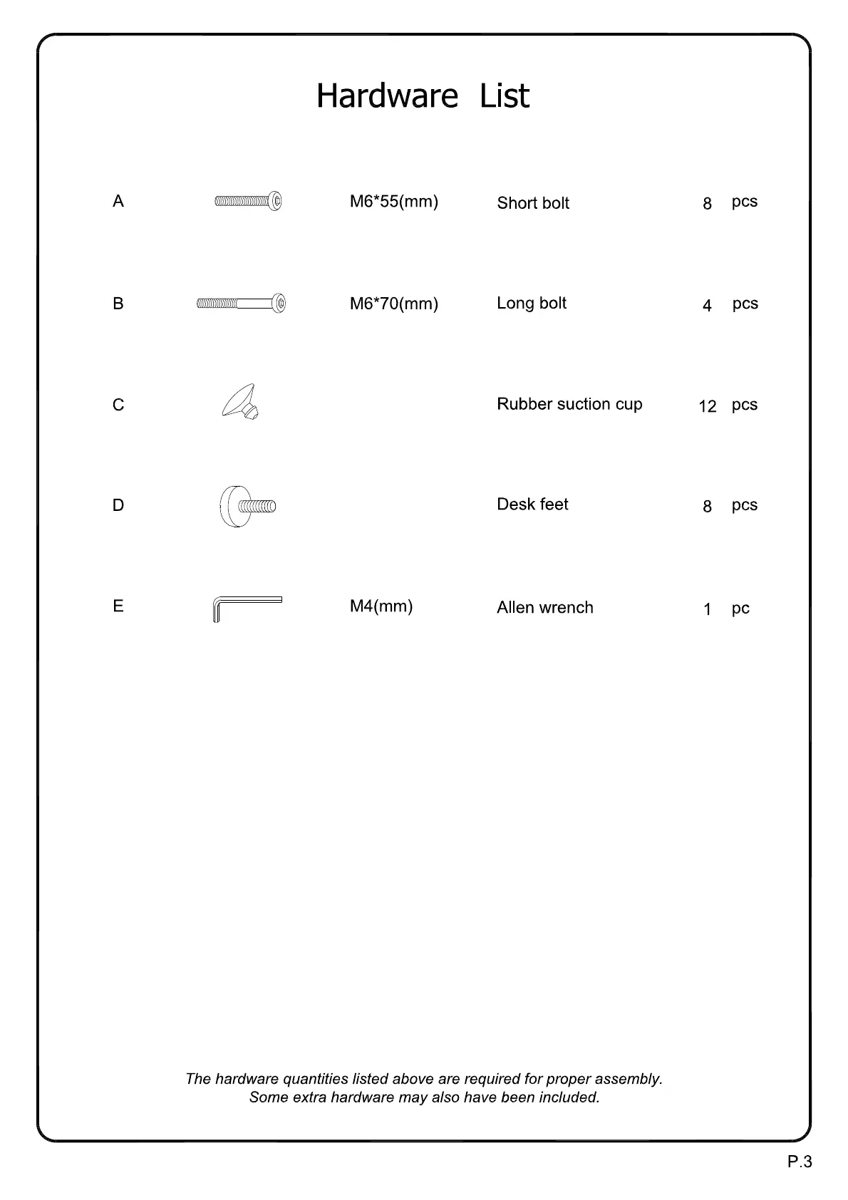 Walker Edison D51X29 - Hardware List