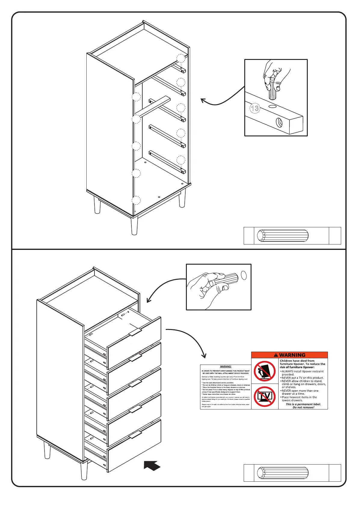Walker Edison LEEB3B - Step 16: Install Drawer Stops; Step 17: Insert Drawers