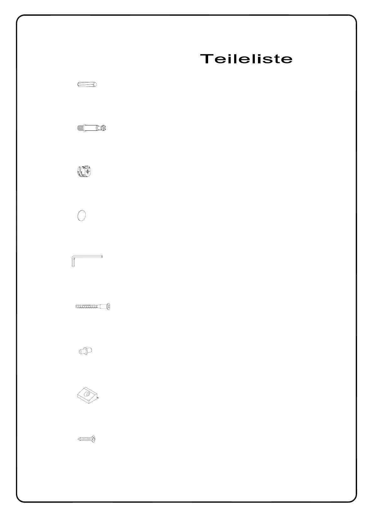 Liste des pièces