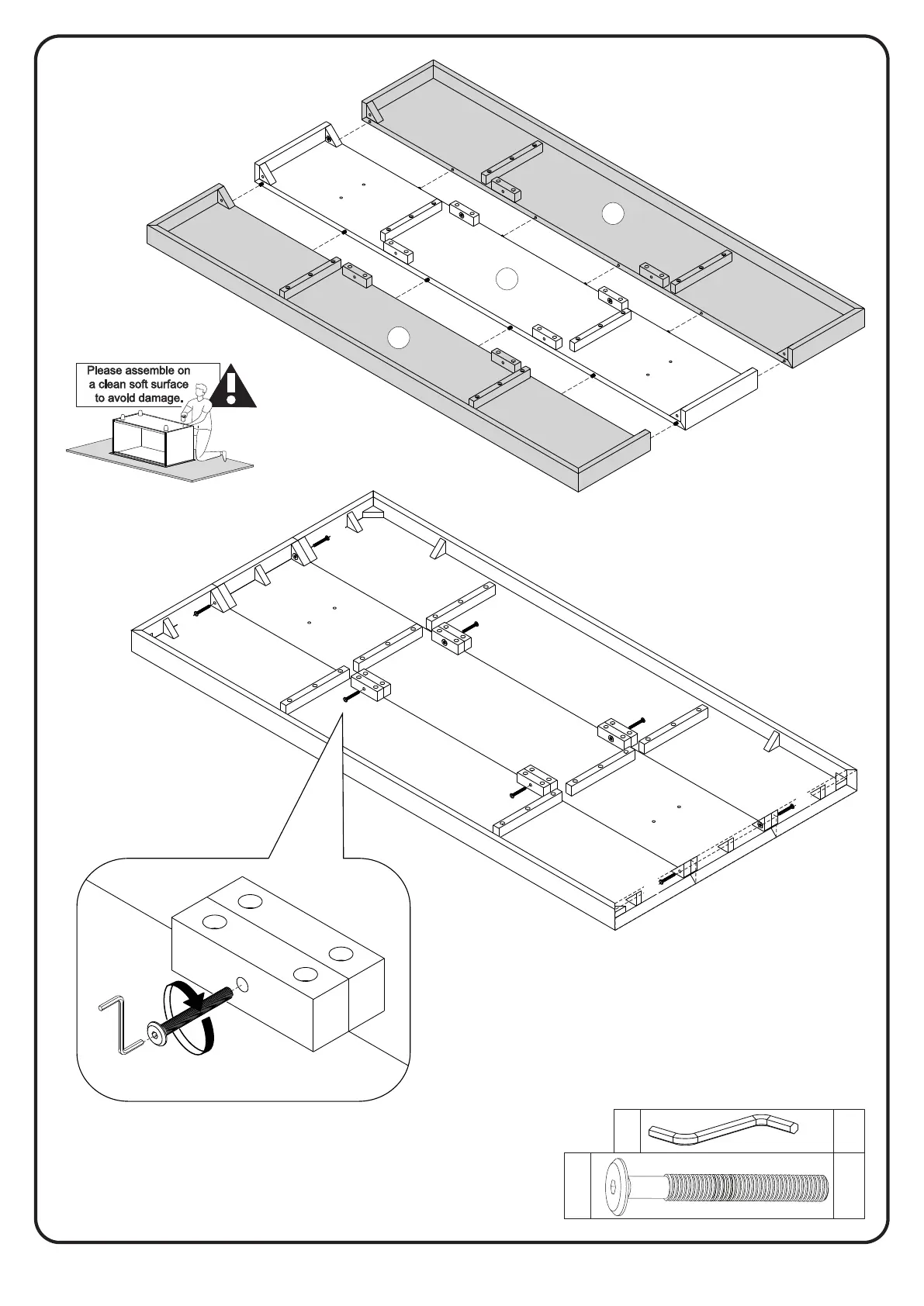 Secure the pieces using bolt (C) and hex key (I).