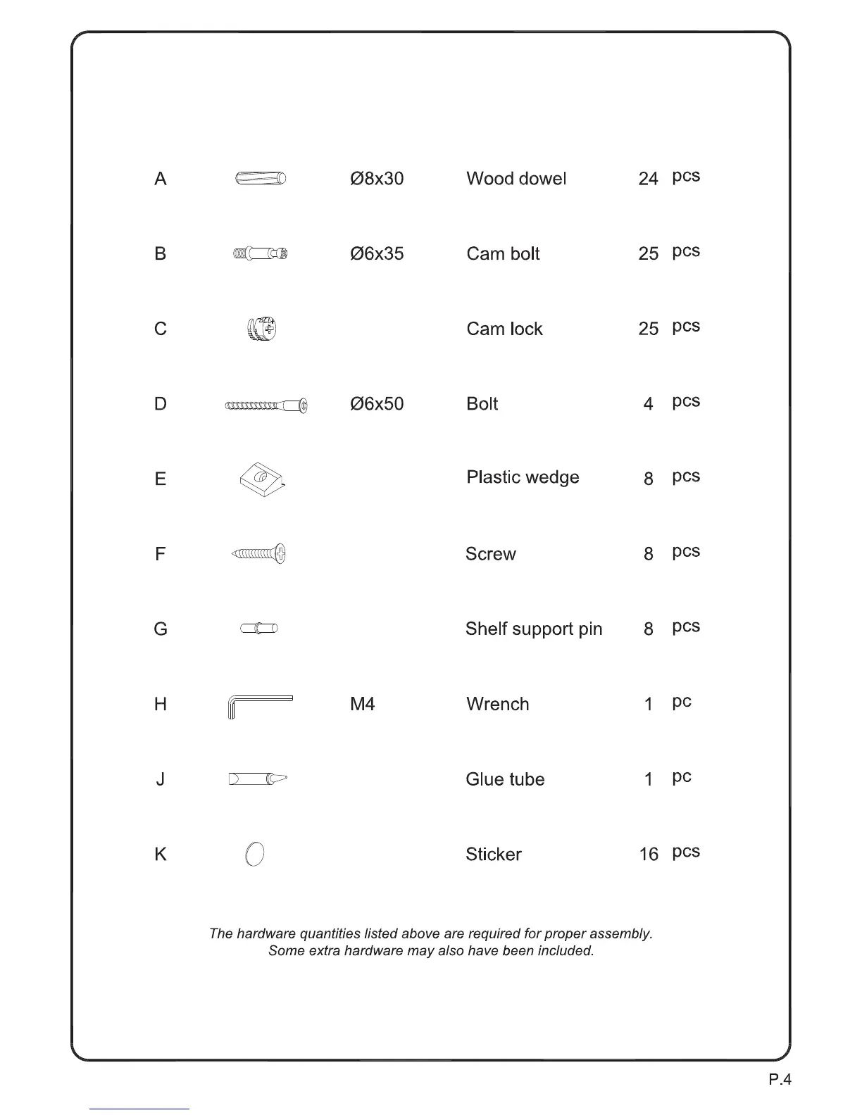 Walker Edison W58CSP - Hardware List