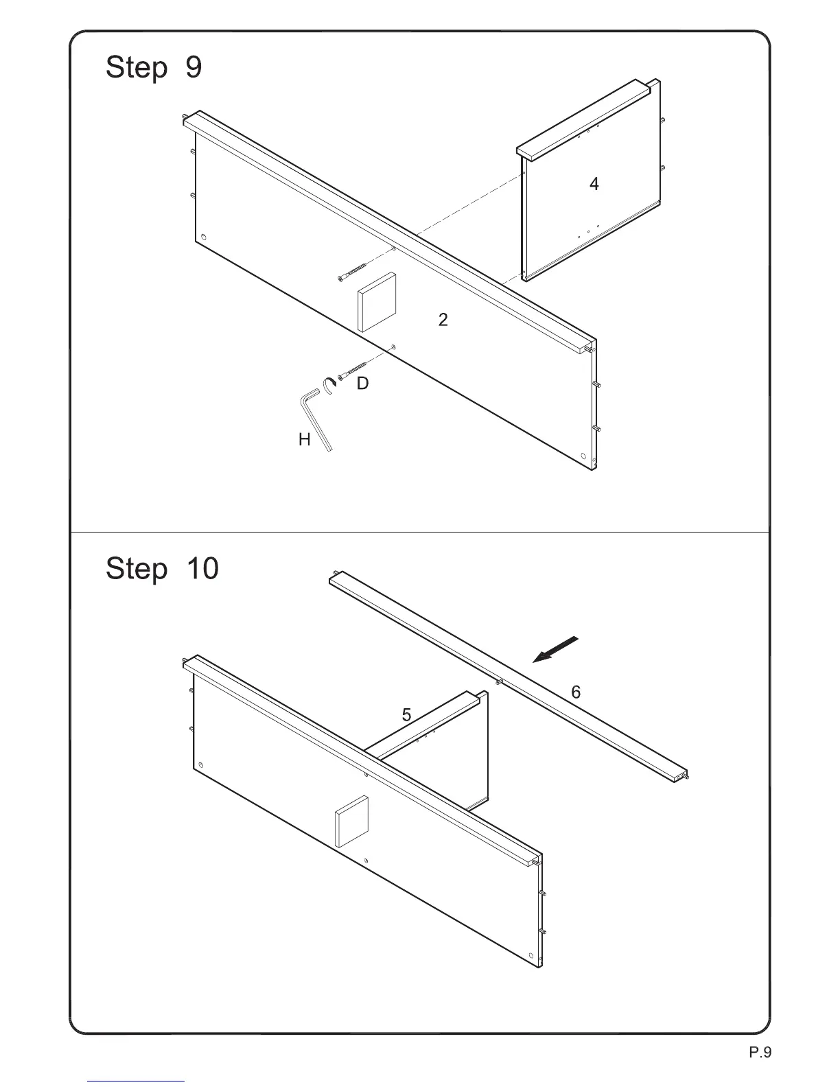 Attach panel (4) to panel (2) using bolts (D). Tighten bolts (D) with wrench (H).