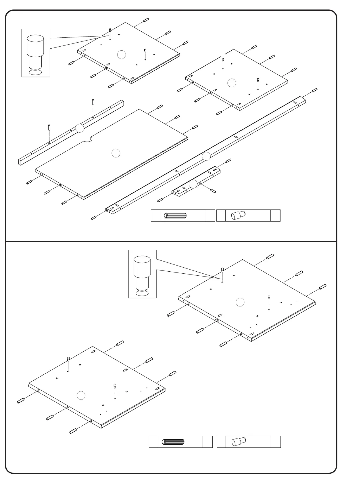 Insert Wooden dowel (A) into part (2) and (3).