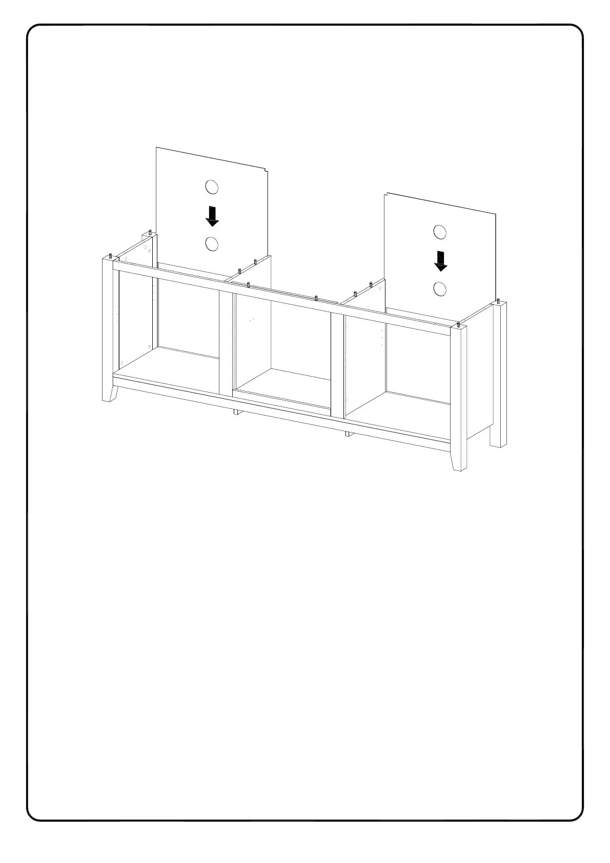 Right up the stand and slot in the back panel (8) to the side panels. Please pay attention on the