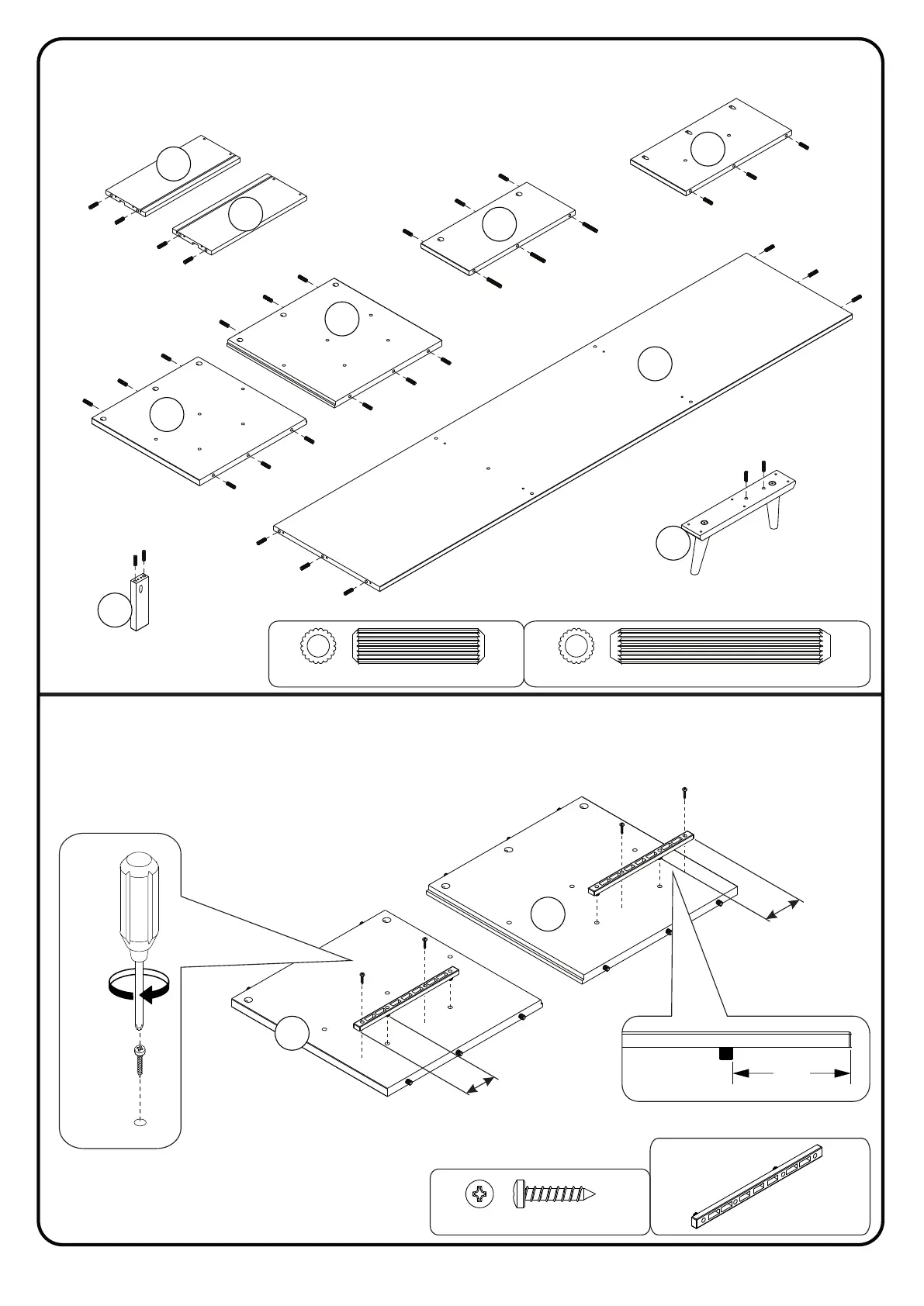 Attach the Plastic Slide (F) into part (6) and (7) using Screw (E) and a Phillips