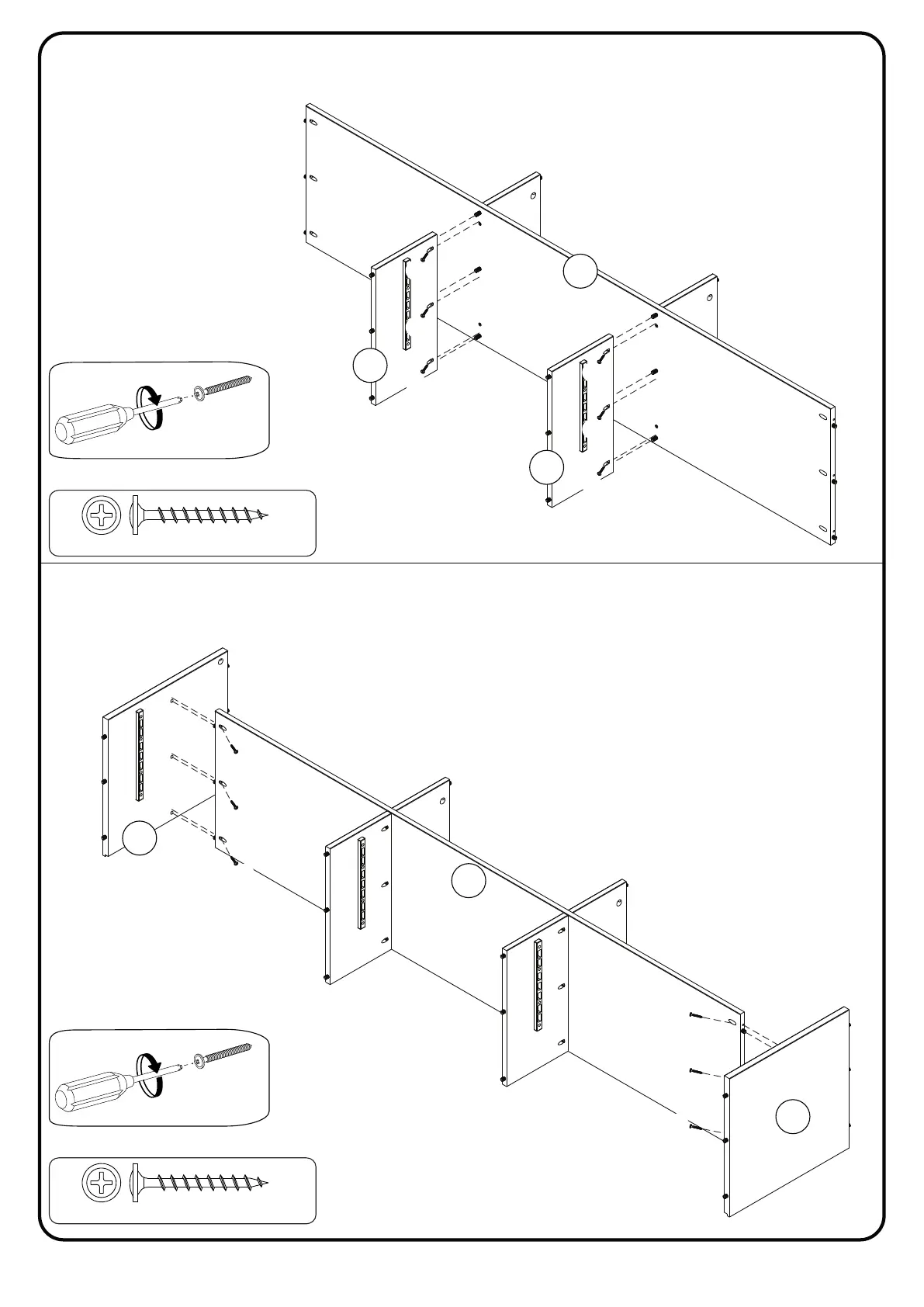 Walker Edison W70IV3D - Step 5: Attach Shelves to Back Panel; Step 6: Attach Side Panels to Back Panel