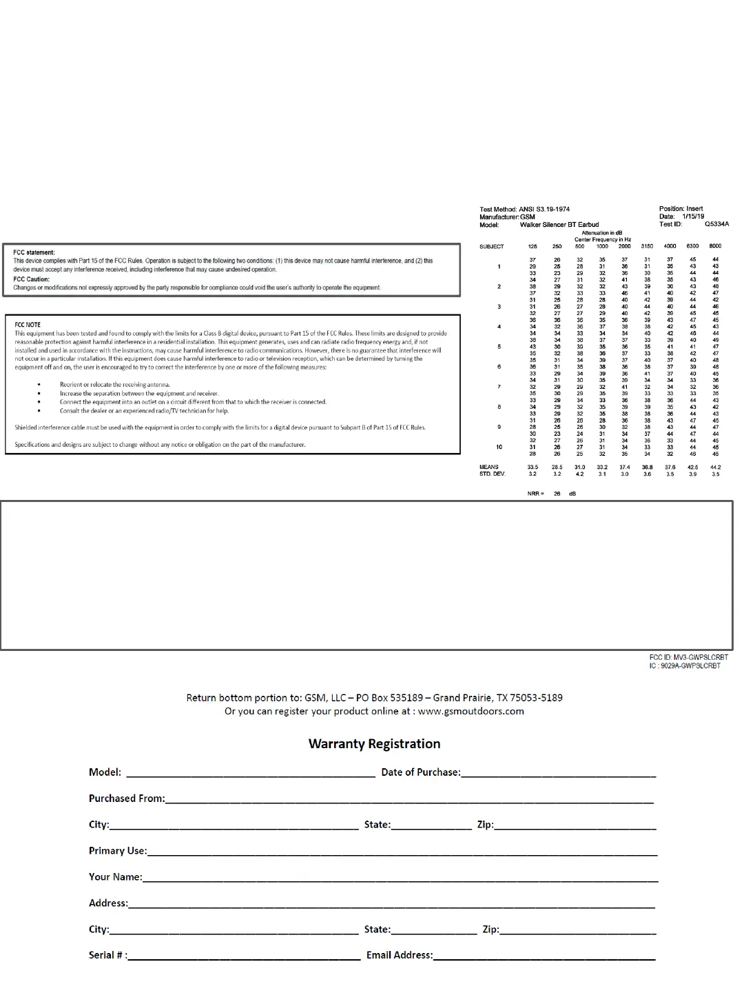 Walker’s warrants this product to the original purchaser to be free from defects in materials and workmanship, under normal use and conditions for a period of One Year from the