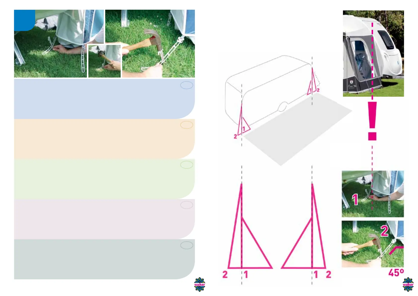 •Alwaysstartwithpeggingtherearoftheawningnearesttothecaravan.