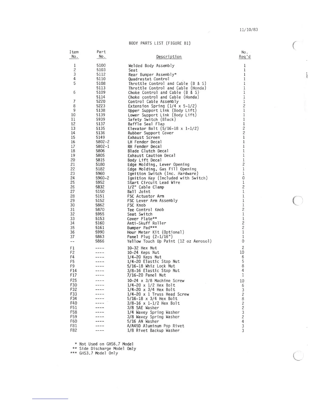Walker M36-42 - Body Assembly Parts List (Figure B1)