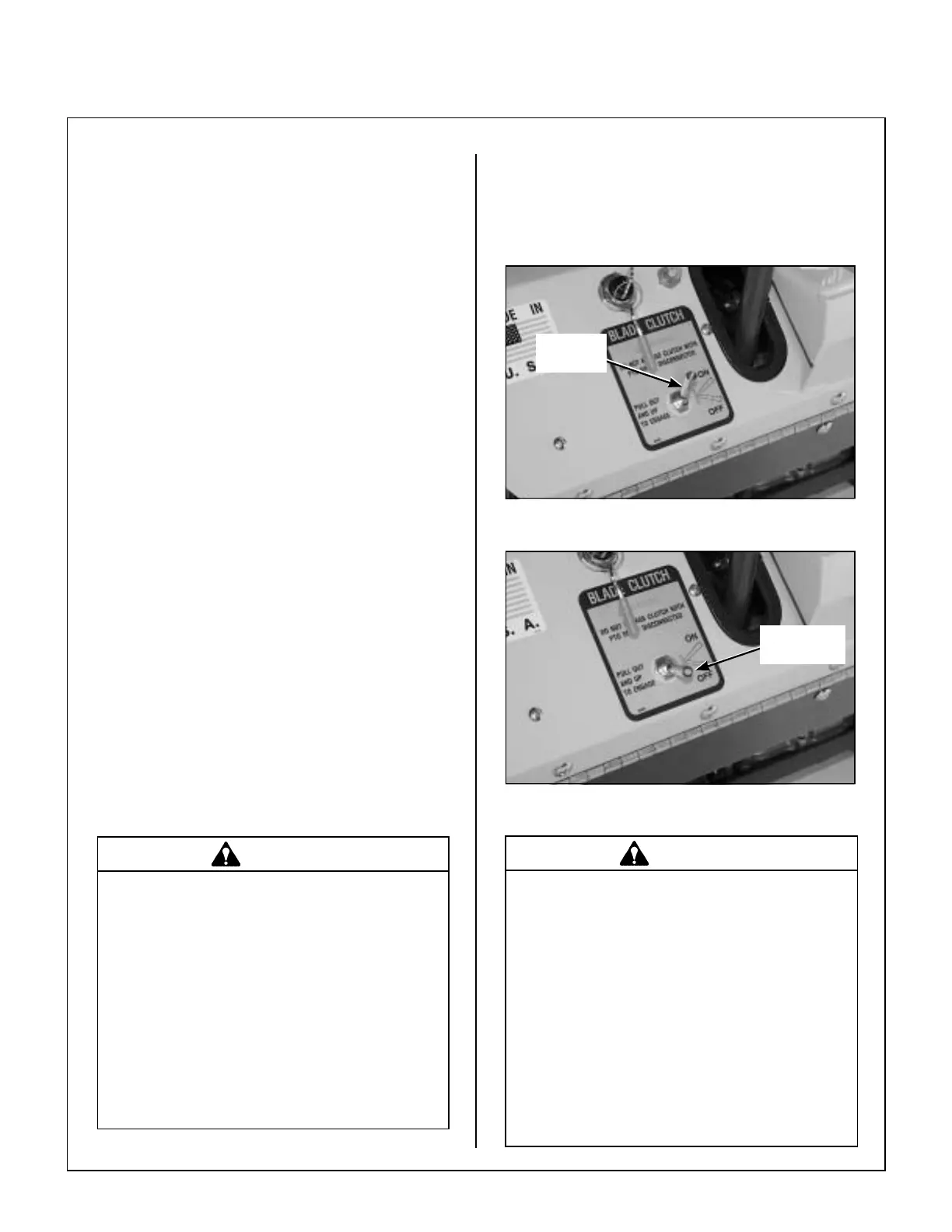 IMPORTANT: DO NOT engage the blade clutch