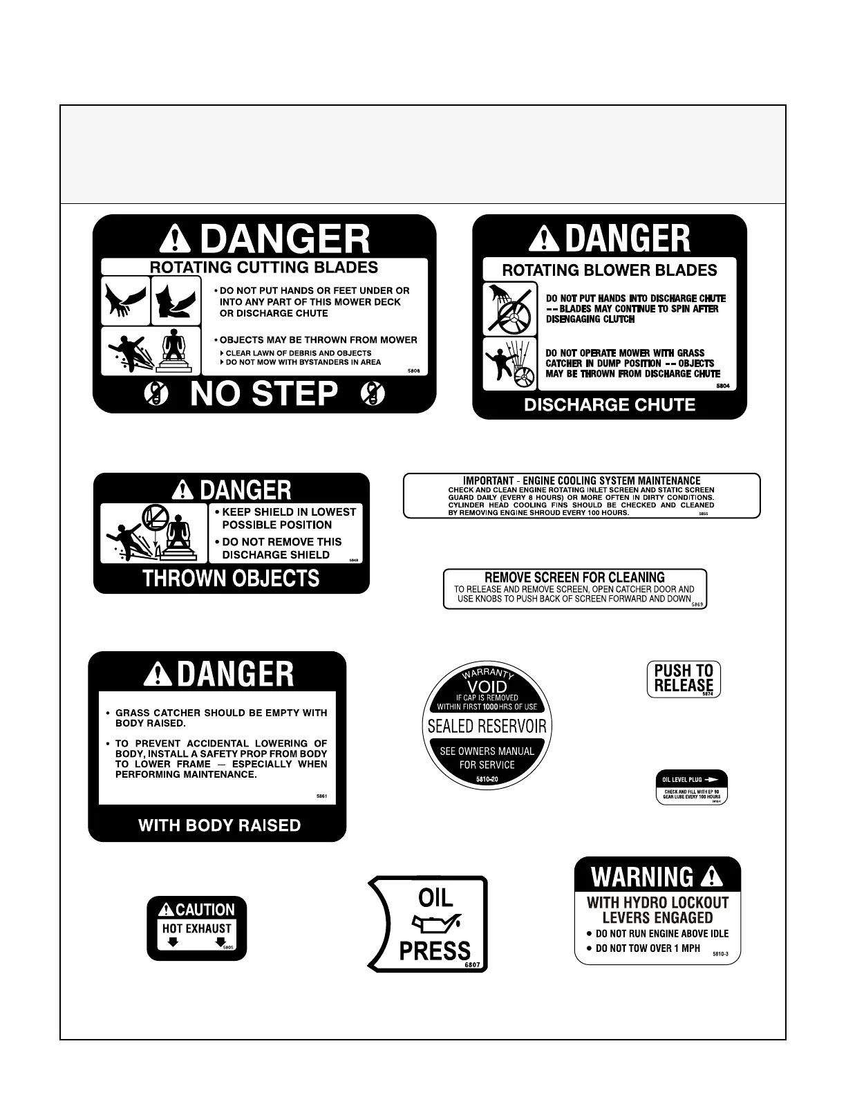 SAFETY, CONTROL, AND INSTRUCTION DECALS