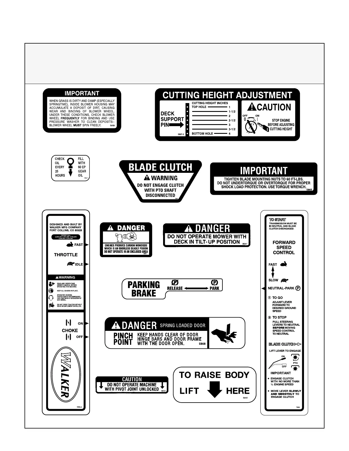 SAFETY, CONTROL, AND INSTRUCTION DECALS