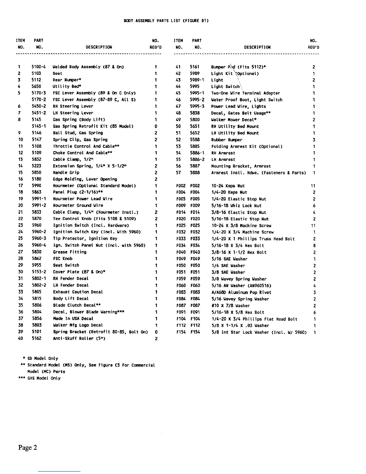 Walker MC36-54 - Body Assembly Parts List (Figure B1)