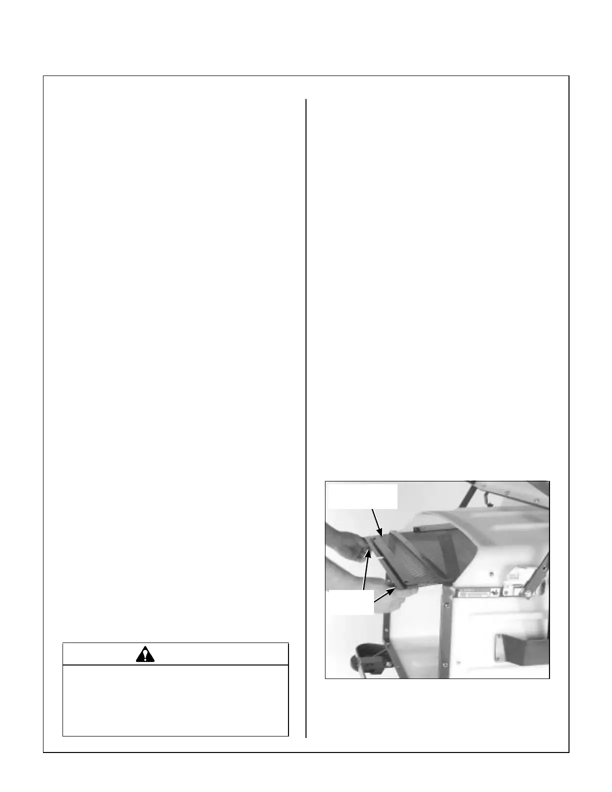 on the grass catcher screen knobs (on either side of
