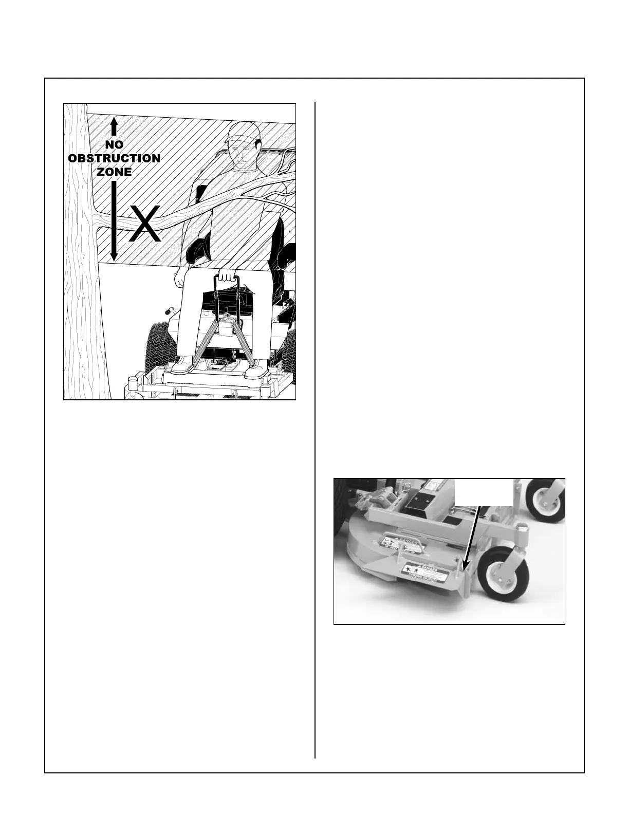 When mowing close to obstacles, orient the side dis-
