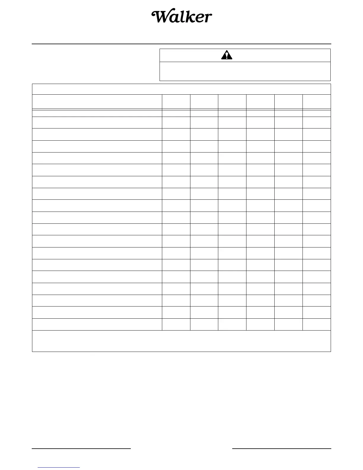 MAINTENANCE SCHEDULE CHART - RECOMMENDED SERVICE INTERVALS - MODEL MW