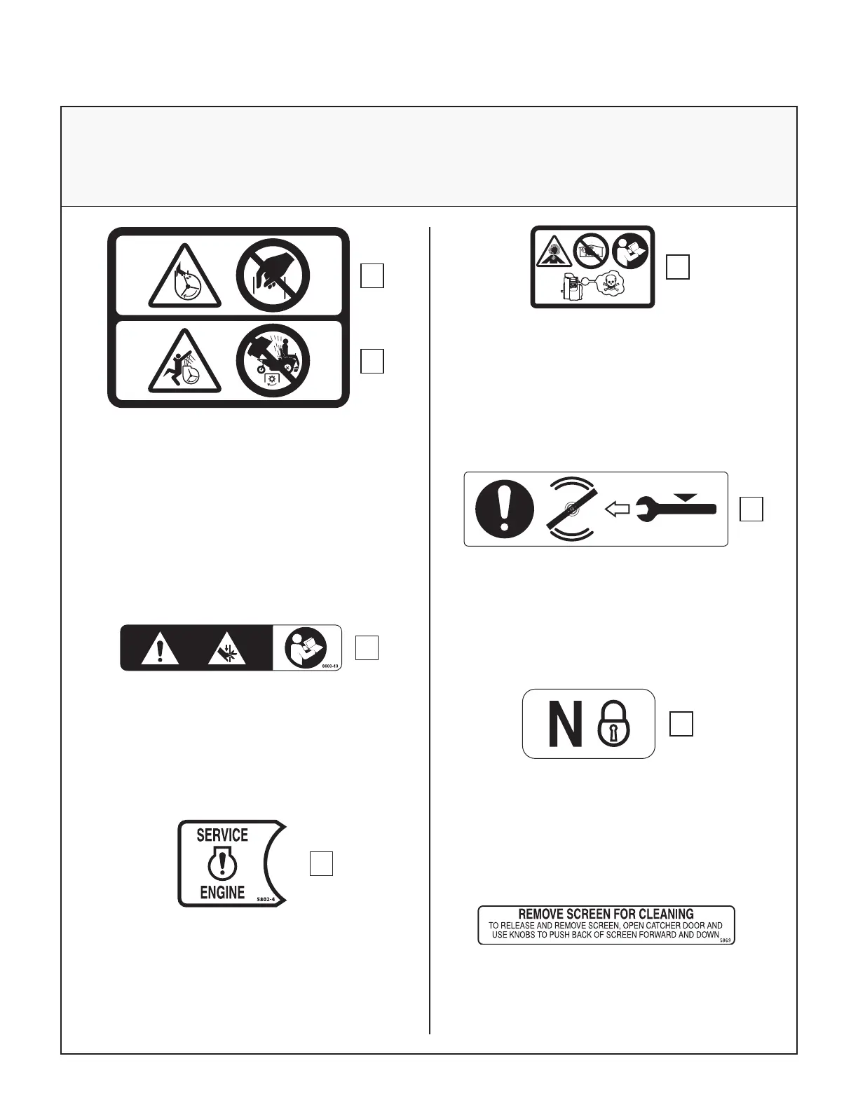SAFETY, CONTROL, AND INSTRUCTION DECALS
