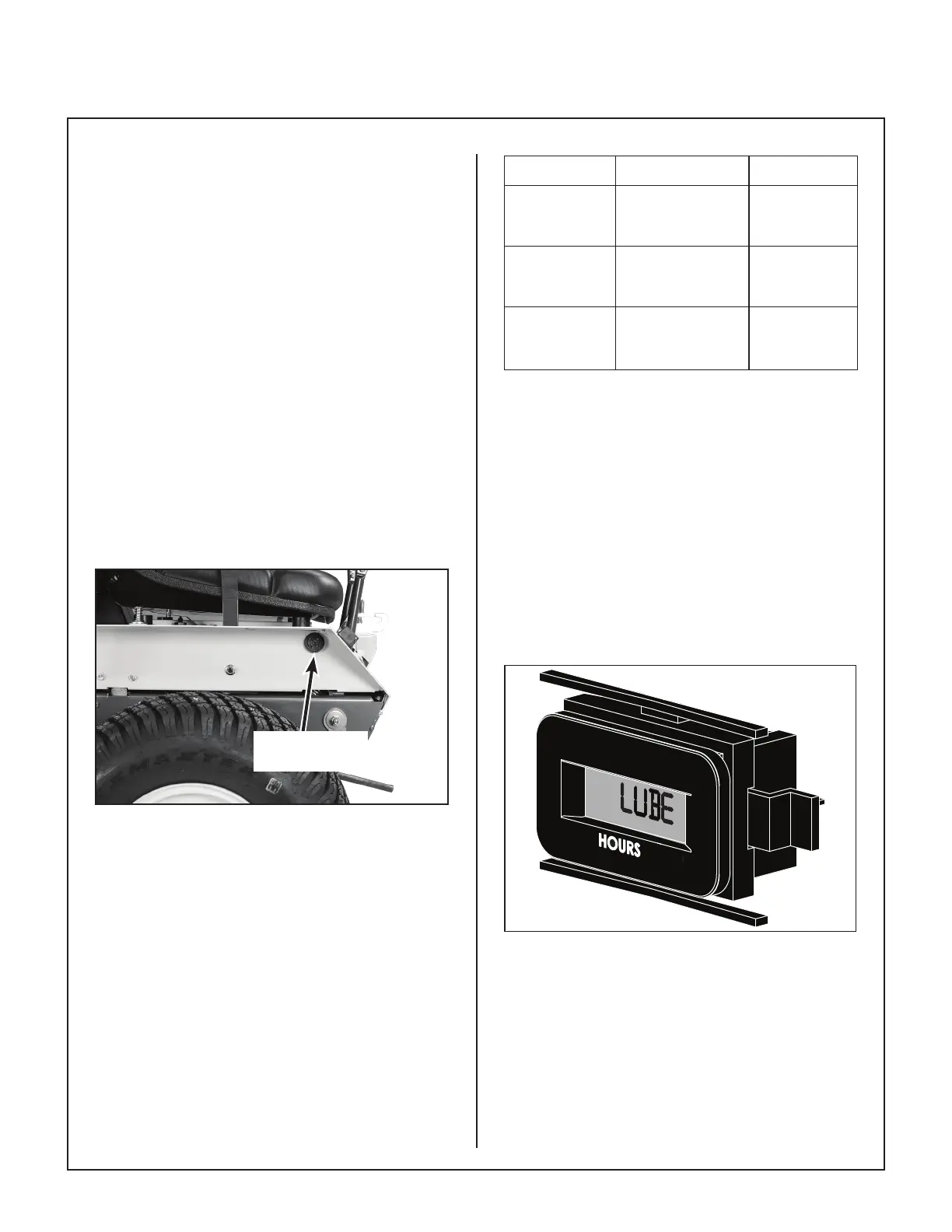 The hourmeter provides maintenance reminders af-