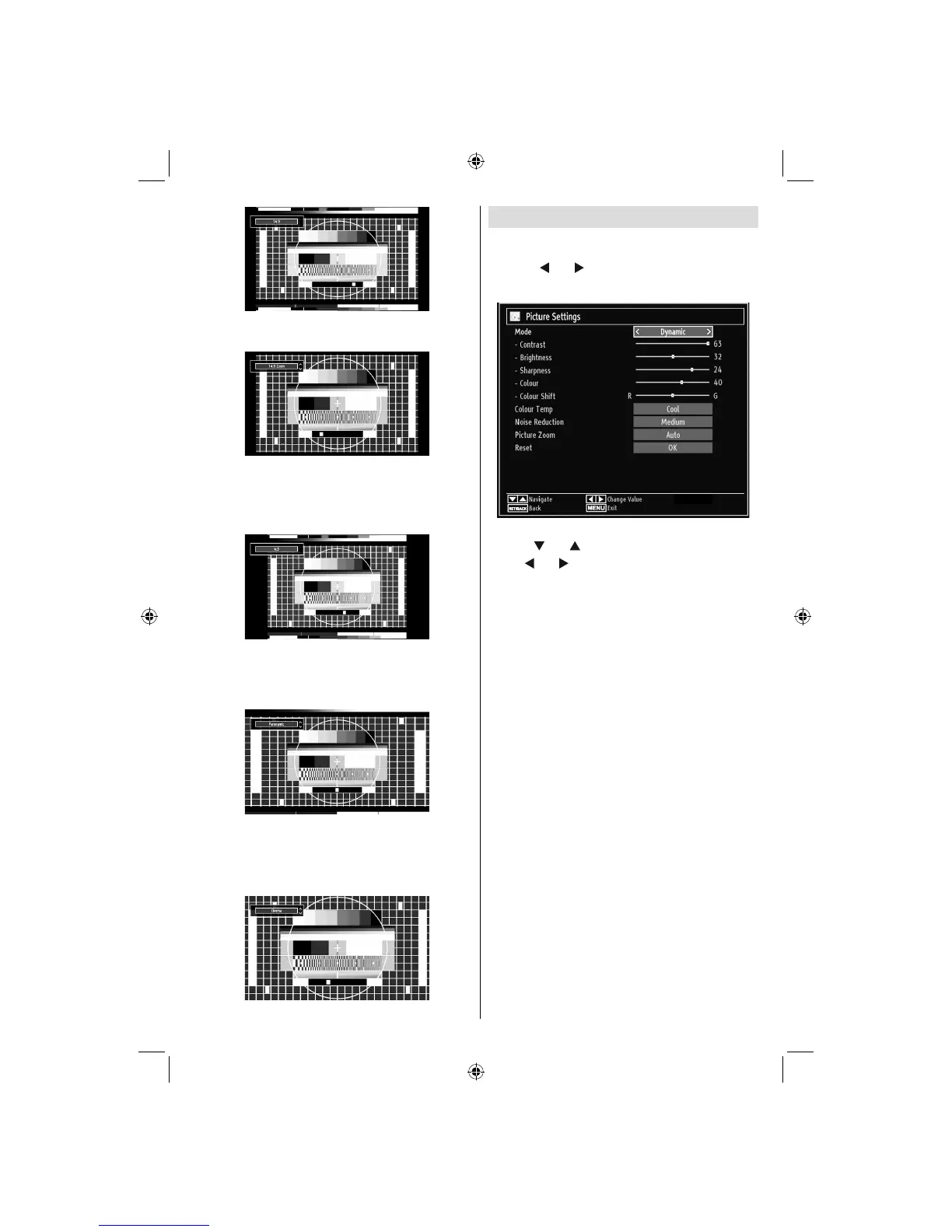 Press “MENU” button and select the Picture icon