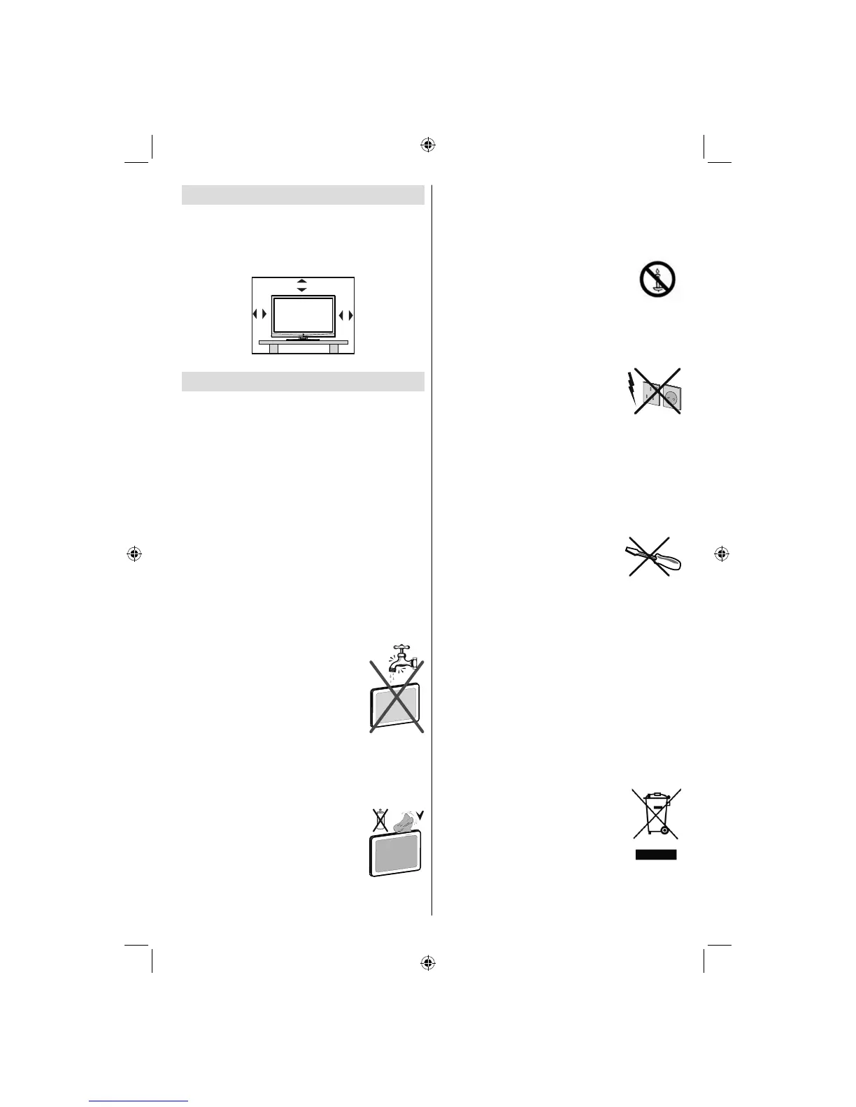 Do not place the set, a piece of furniture, etc. on the